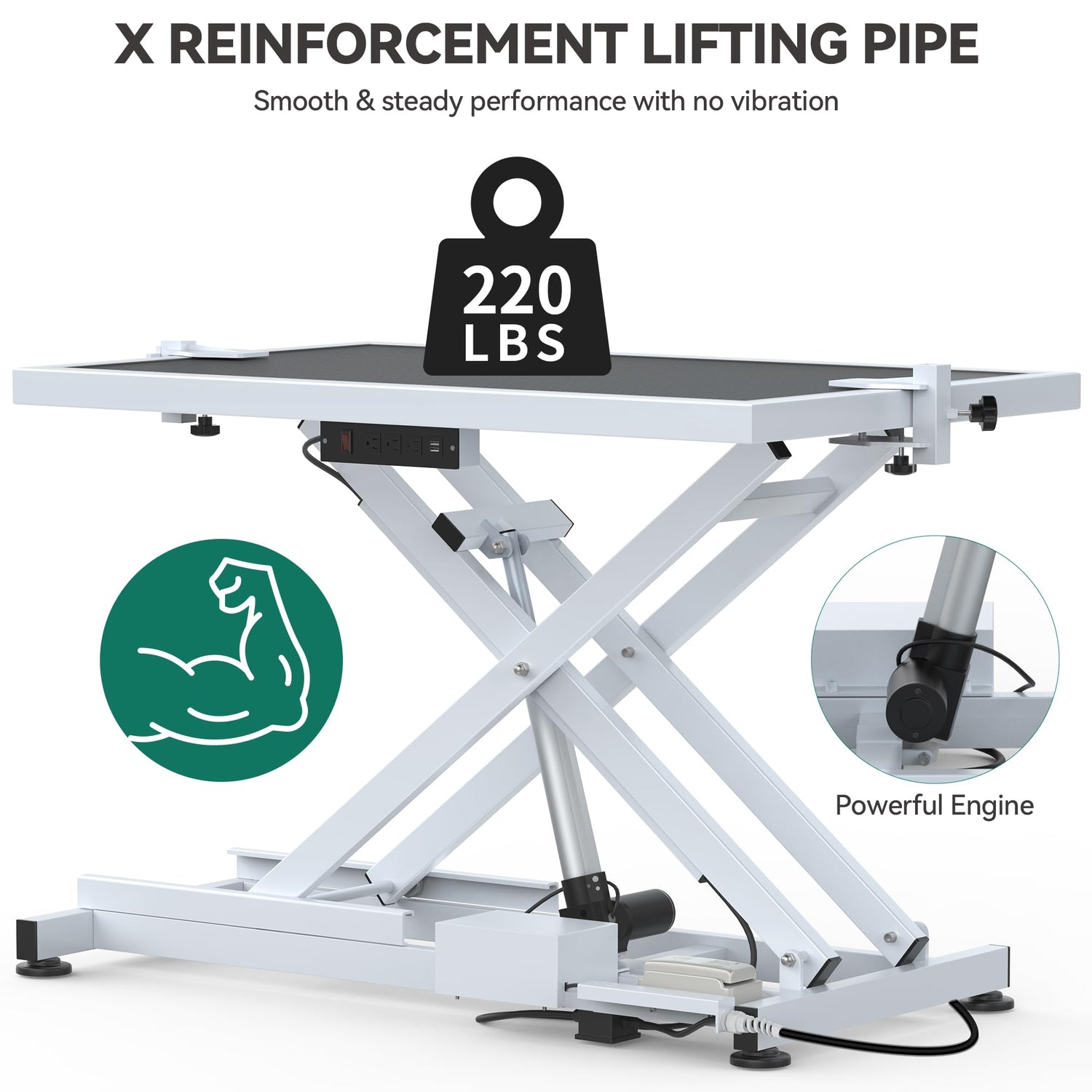 - Smooth & Quiet Lifting: YITAHOME electric lifting grooming table features a powerful motor system and foot pedals for smooth and quiet 11.8"-39.4" height adjustment; Groom your pets with ease without having to bend down; Large dogs can conveniently get on & off the table