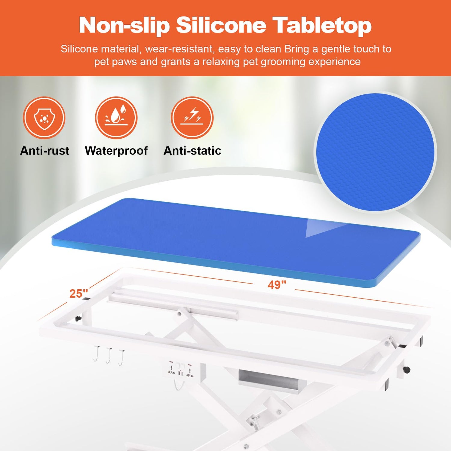 - Thoughtful Design: Premium non-slip and waterproof silicone countertop brings a soft and gentle touch to pet paws and grants a hassle-free pet hair cleaning experience; AC outlet and USB port add-ons offer easy access to hair dryers, clippers, nail grinders, or phones. Convenient for grooming, trimming, dressing, drying and so on