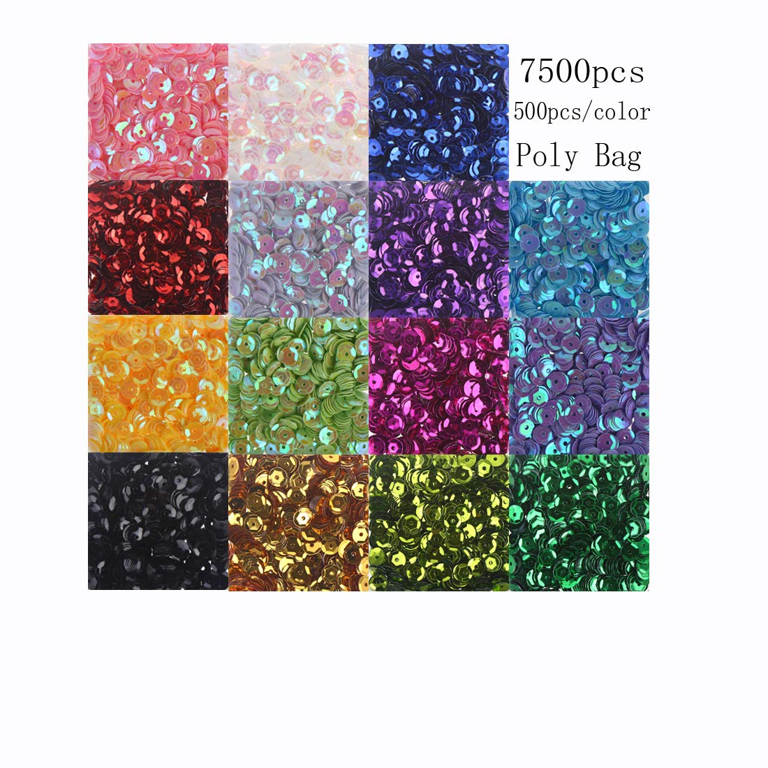 - Product contents:Totally 7500Pcs loose sequins,15colors,500pcs/color,bagged,diameter:7mm/0.28",hole diameter:1.0mm/0.04". It may have some bad or debris,we will try to put some more to ensure you enough.