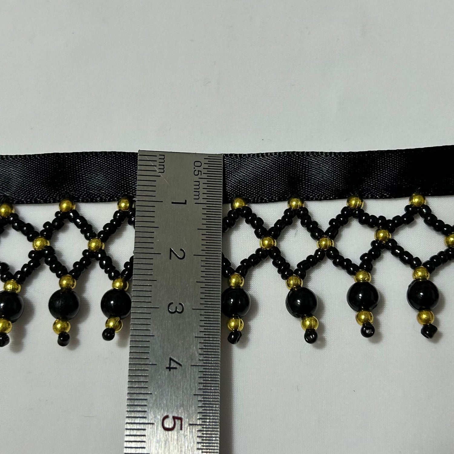 GorinsKani 2 Yard White Black Silk Tassel Gedbkiuce 2 Yard White Black Silk Tassel Fringe Trim Beads Lace Trim Embroidery Lace Fabric Sewing Material Tassels (Black Gold)