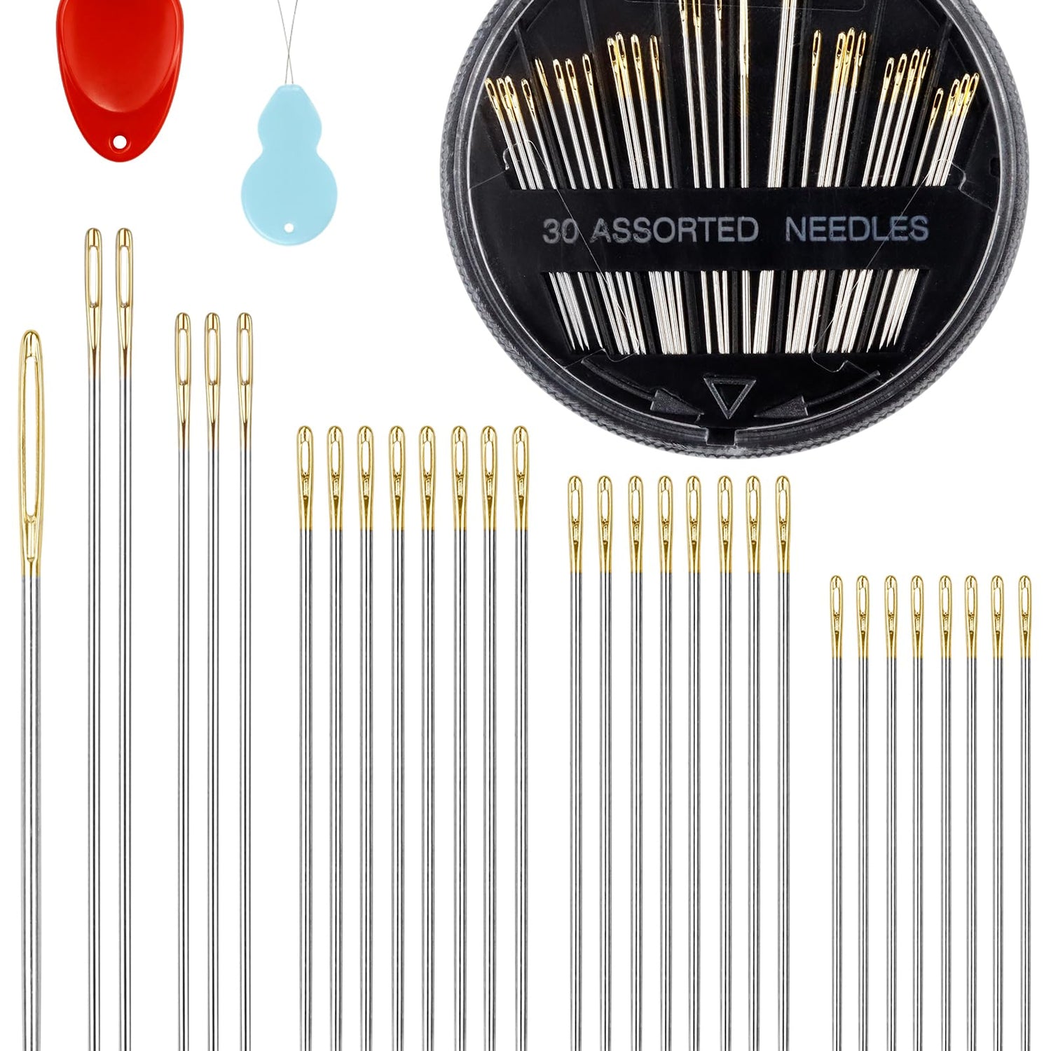 - 【Easy Threading】 The gold-plated large eye design of the needles makes threading simple, especially with the included needle threaders for hand sewing. The smooth surface reduces resistance, allowing for easier sewing through various fabrics.