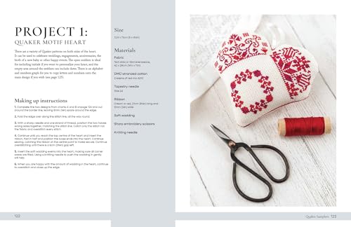 10 traditional and 10 modern samplers, each with a full stitch chart and stunning photography. 180 individual charted motifs and medallions that you can use to build up your own sampler designs. 3 full alphabets in both upper and lower case so that you can customize your designs in quintessential Quaker style. 2 modern projects: a Quaker motif heart and a pincushion with a half medallion pattern An overview of the history of the Quaker sampler and the mystery surrounding its origins A complete guide to the tools, materials and techniques needed, making this the perfect introduction for embroiderers of all abilities