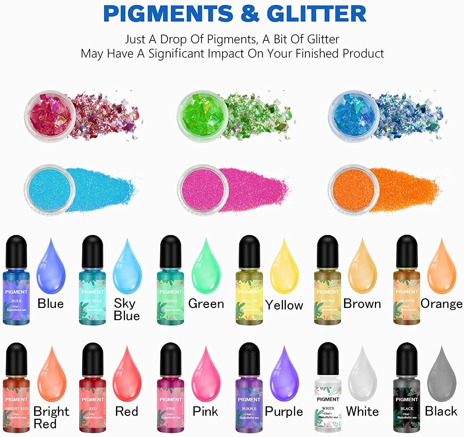 - 【Variety Resin Pigment】The resin starter kit come with 12 different colors resin pigments, perfect for resin mold beginners or experienced enthusiast, just a small drop can have a great effect on your resin coasters,variety pigment colors can porvide more possiblity on your resin mold coaster , not only that this resin pigment included in this diy coasters kit mix well in resin, and they are eco-friendly and non- toxic ,you can use this resin pigment with confidence.