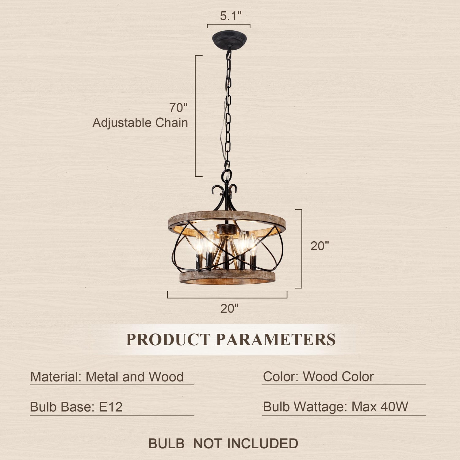 • 【FIVE LIGHT CONFIGURATION】Wooden cage chandelier is capable of holding 5 E12 bulbs (bulbs not included), providing ample lighting for your space. Whether you need bright lighting for a functional area or a soft, relaxing atmosphere, this fixture has you covered.