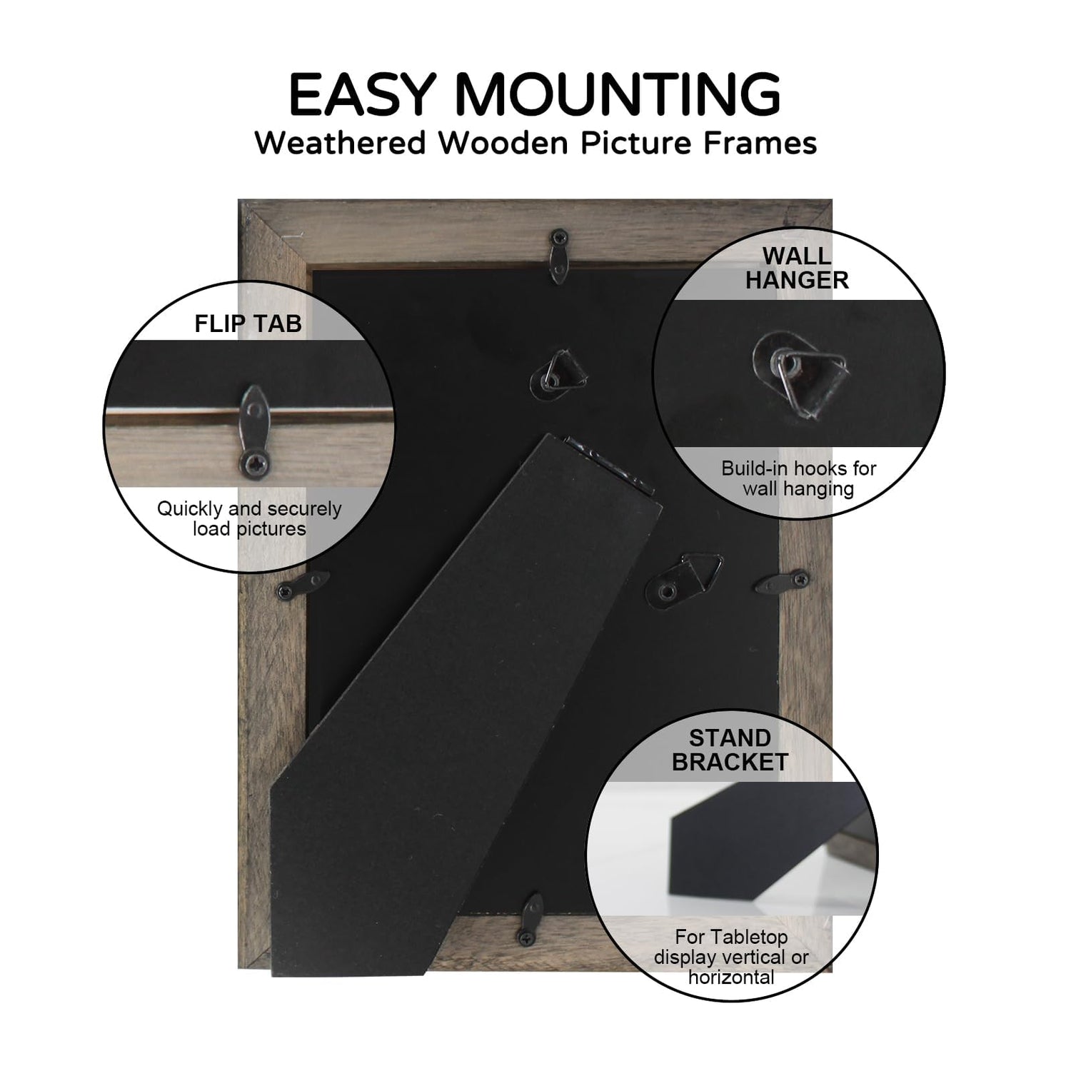 - ENVIRONMENTALLY FRIENDLY: Crafted with premium quality solid wood materials. These weathered distressed picture frames exude a classic farmhouse rustic style, perfect for a home with farmhouse or beach house decor.