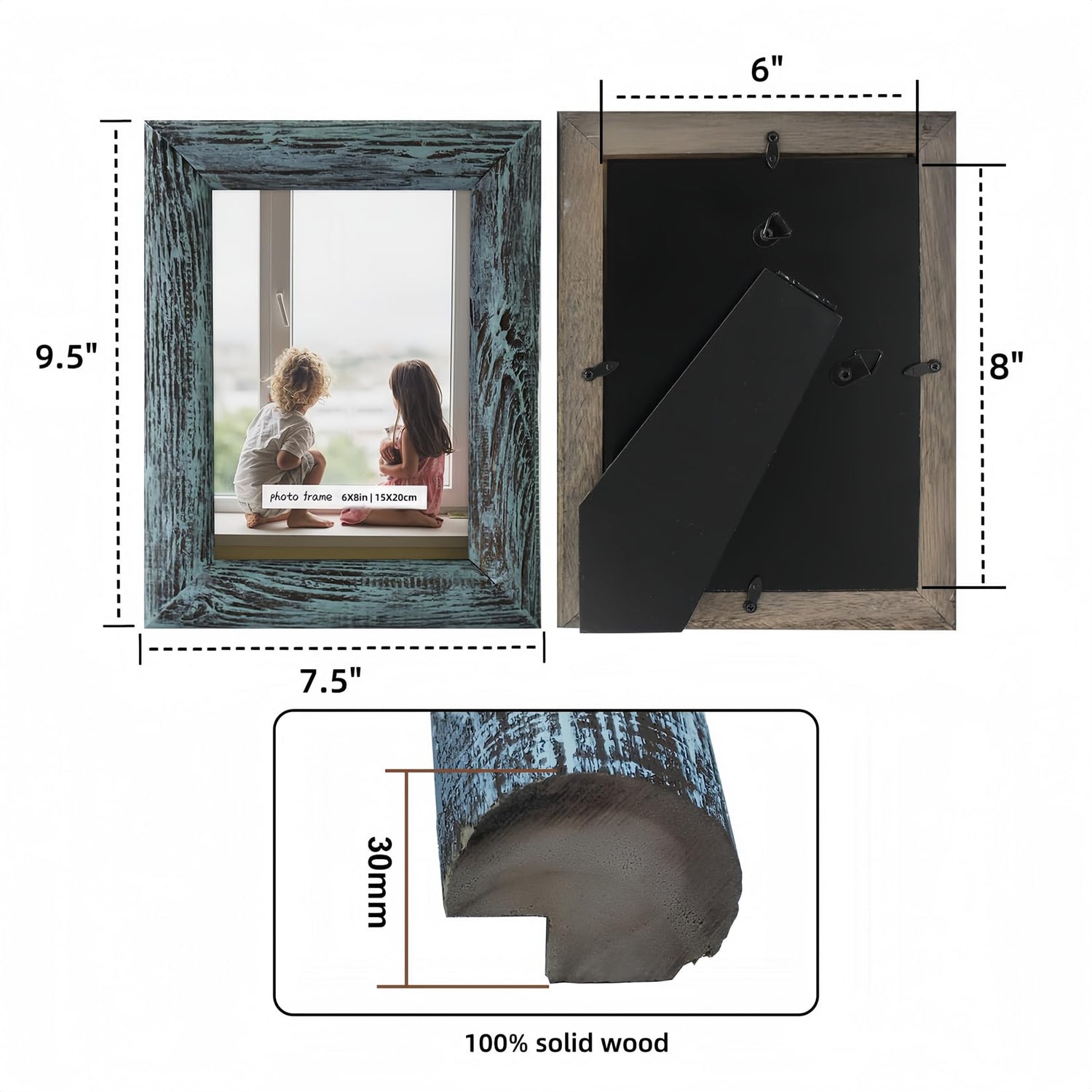 - EASY TO INSTALL: The rustic wood picture frames 6X8 comes with 4 flexible swivel tabs on the back, Spring type action to remove the backing, without hurting fingers. It's easy to open and put in photos.