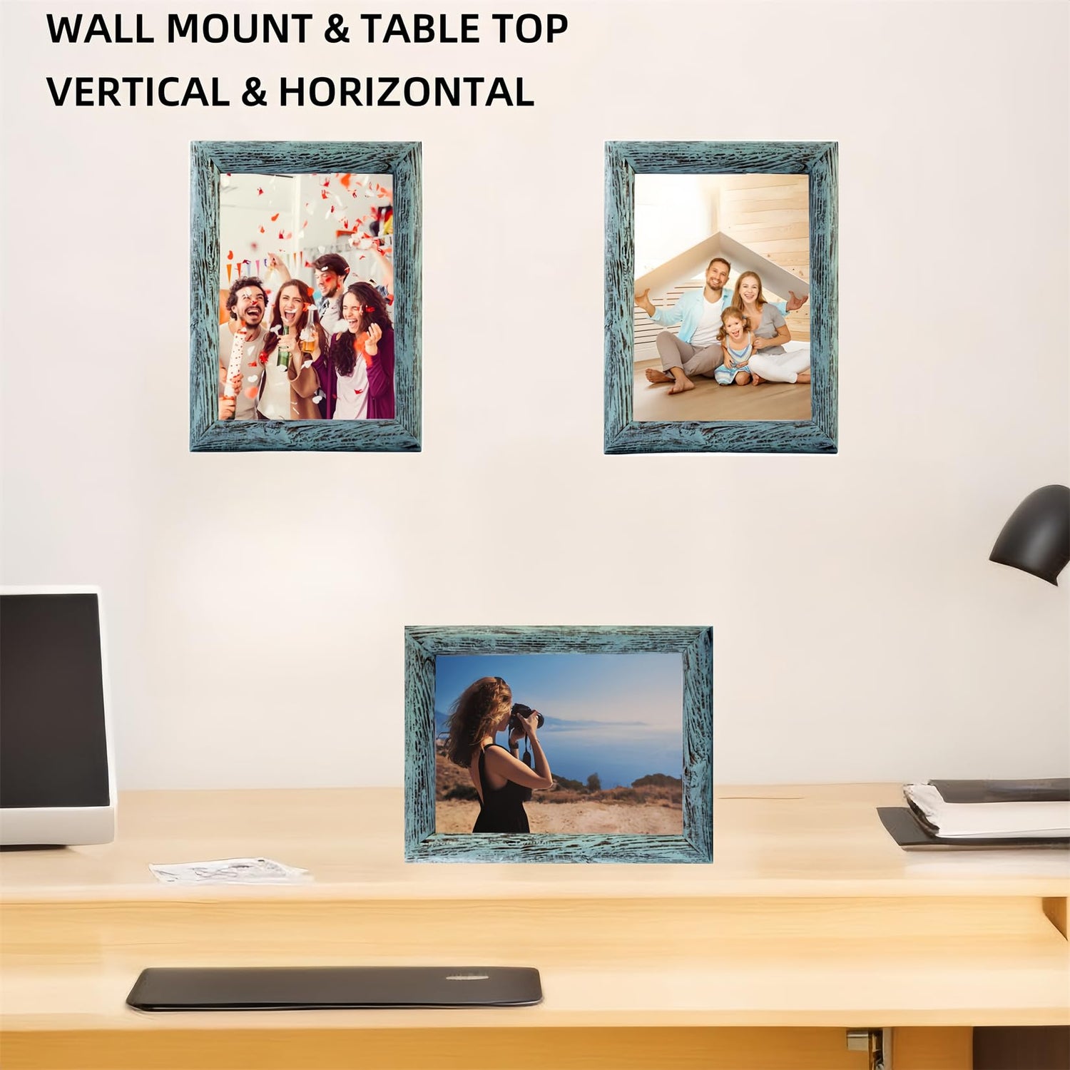 6x8 Green Picture Frames Set of 2, Solid Wood Photo Frame with HD Glass, Farmhouse Distressed Rustic Natural Weathered Wooden Frames for Gallery Wall Mounting or Table Top Display Home Decorative