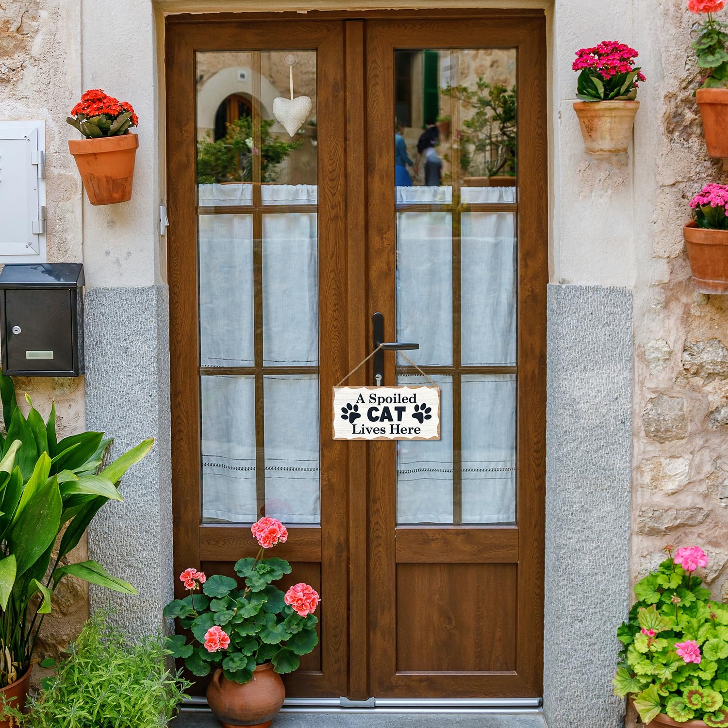 A Spoiled Cat Lives Here Wooden Hanging Sign Plaque, Wall Decor Sign With Personalized Quotes, Rustic Wood Sign Wall Art for Home Garden Yard Farmhouse - A29