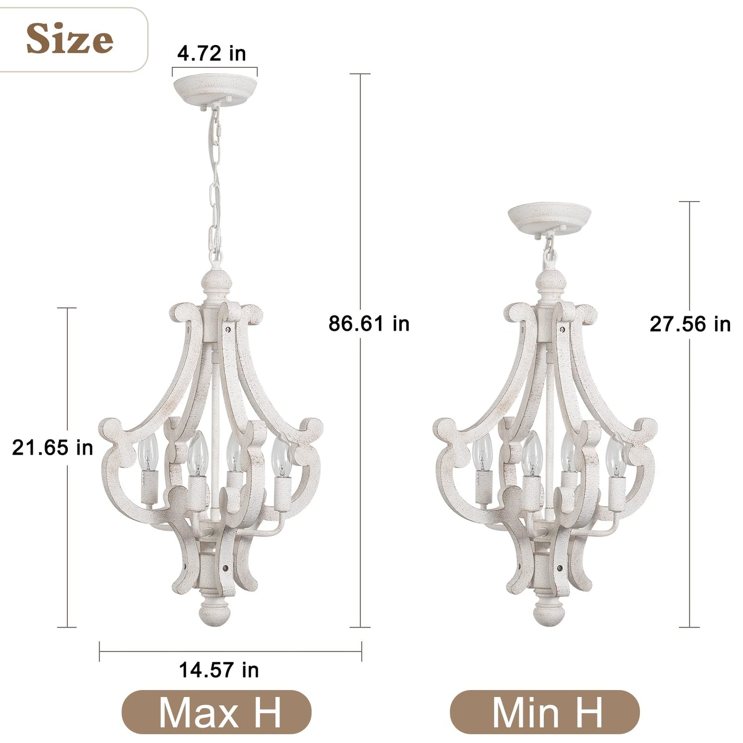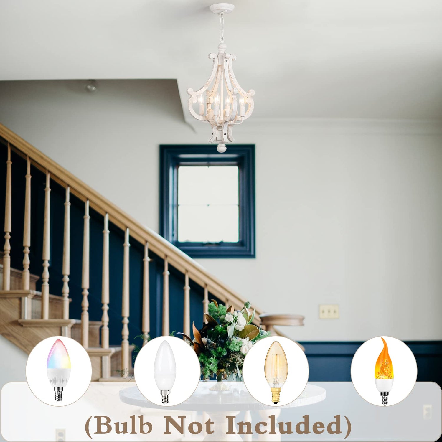 - COMPATIBLE BULB & DIMMABLE-ALISADABOY 4 light white rustic chandelier is compatible with 4 x E12 LED, incandescent, fluorescent, CFL, halogen bulbs. If this 4 light wood pendant light is used with compatible dimmable bulbs and dimmer switch, it is fully dimmable (Bulbs & Dimmer Switch NOT INCLUDED)