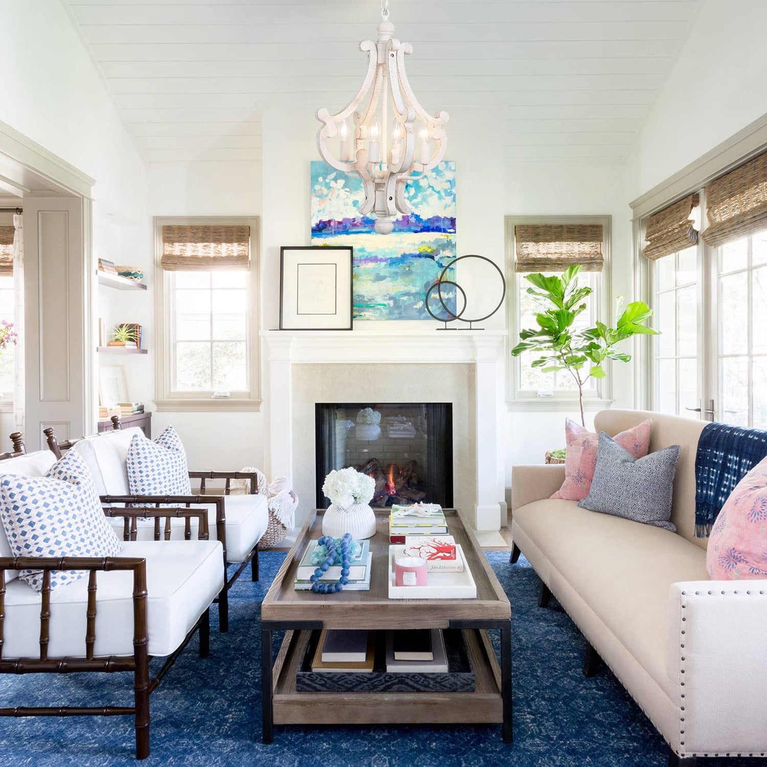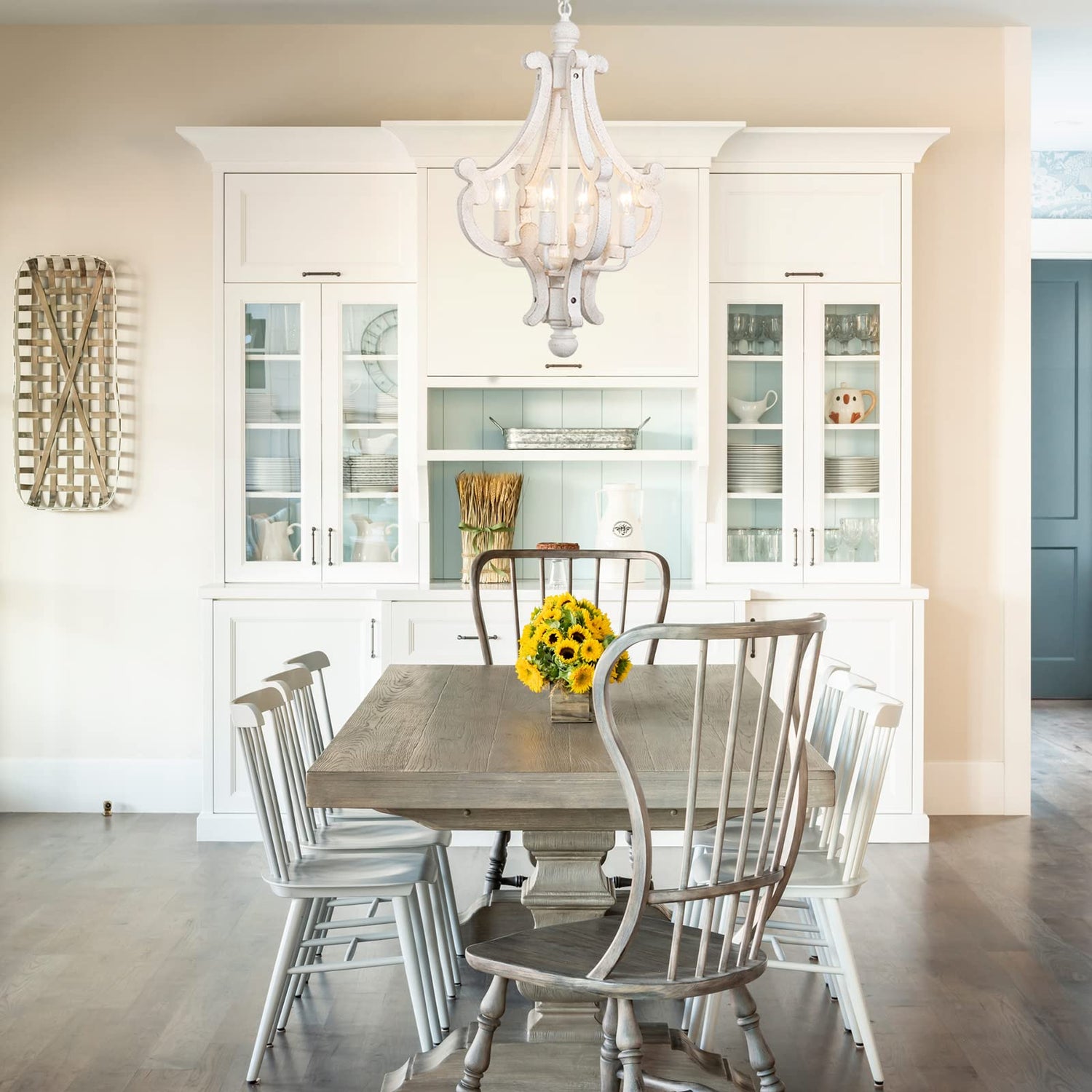 - RECOMMENDED APPLICATION SITE-Featured with candlestick bulb holder and distressed white finish wood frame, this wood chandelier lighting is suitable for chandeliers for dining room, kitchen island lighting, living room pendant lighting, bedroom chandelier, foyer entrance entryway hanging lamp, stairway lights, etc
