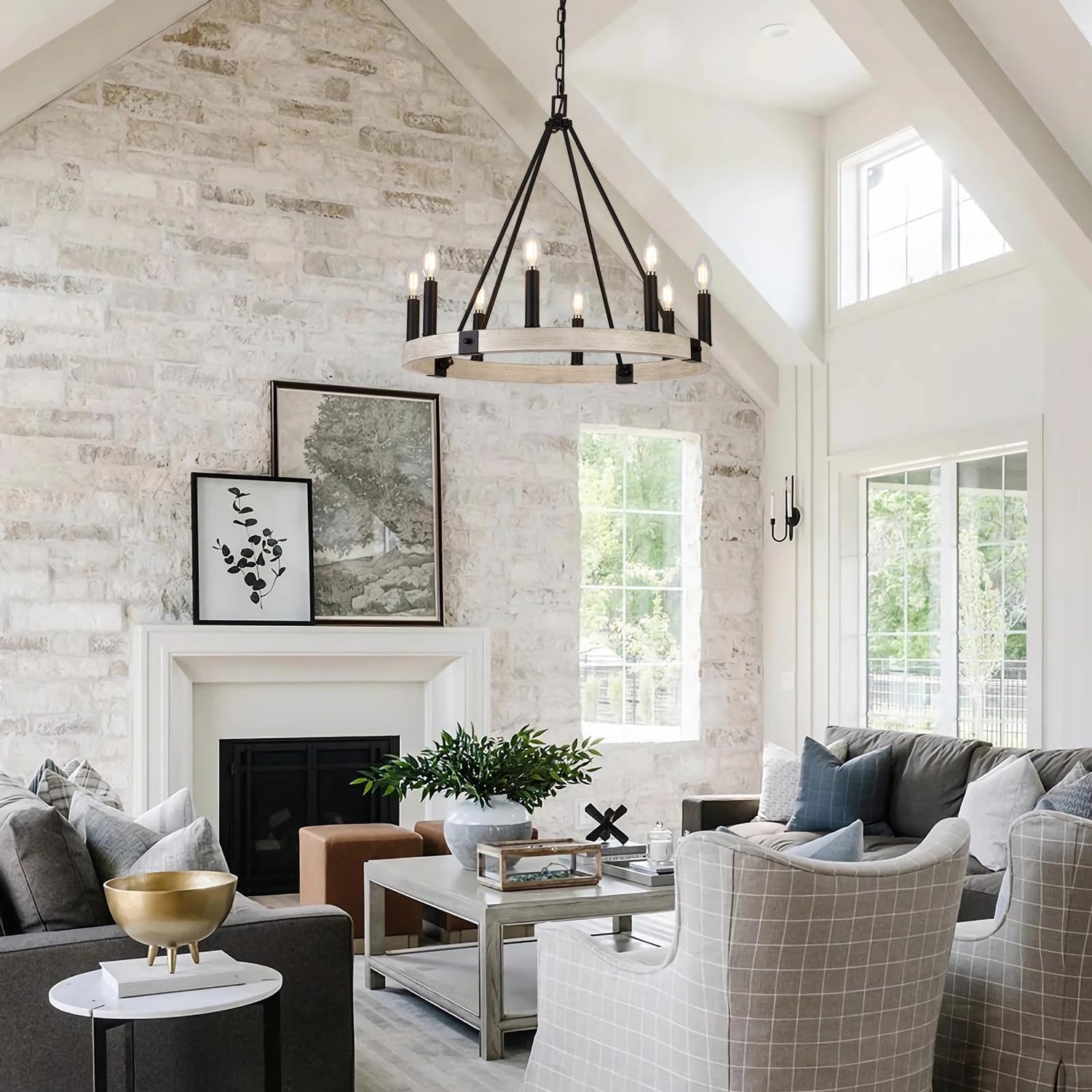 Details: Product Name: Modern Farmhouse Style 8-Light chandelier Crafted Hands, Harmony of White Wood Grain and Black Accent This chandelier's allure lies in the harmonious juxtaposition of white wood grain and a black accents. Handcrafted with meticulous attention, the white wood grain paint lends a touch of natural warmth, while the black accents exudes contemporary sophistication. One chandelier, two personalities — a true embodiment of home's versatility. Weave of Light and Warmth: Embrace Modern Farmhouse Charm In the tapestry of modern farmhouse aesthetics, lighting isn't just an accessory; it's the very fabric that weaves warmth into your space. Introducing our Modern Farmhouse Style 8-Light chandelier — a creation that seamlessly blends modernity with rustic allure, casting a spell of radiance that defines your setting. Exquisite Fabrication, Fusion of Aesthetics and Practicality Chosen from premium steel materials, this chandelier guarantees stability and durability. The circular design, white wood grain paint, and black accents fuse to create a visual symphony that resonates with both the eye and soul. More than just a light fixture, it's an ornament that adds a touch of coziness and nature to your living space. Convenient Installation, Attentive Details For your convenience, we've provided comprehensive installation instructions along with the necessary tools and accessories. Whether you're a DIY enthusiast or not, the installation process is straightforward. Plus, our customer service team is available to assist you, ensuring a seamless experience. Choosing the Modern Farmhouse Style 8-Light chandelier means embracing a lifestyle that seamlessly blends modernity with the charm of rustic living. Light and shadow coalesce here, crafting a distinctive ambiance that welcomes light as an integral part of your home.