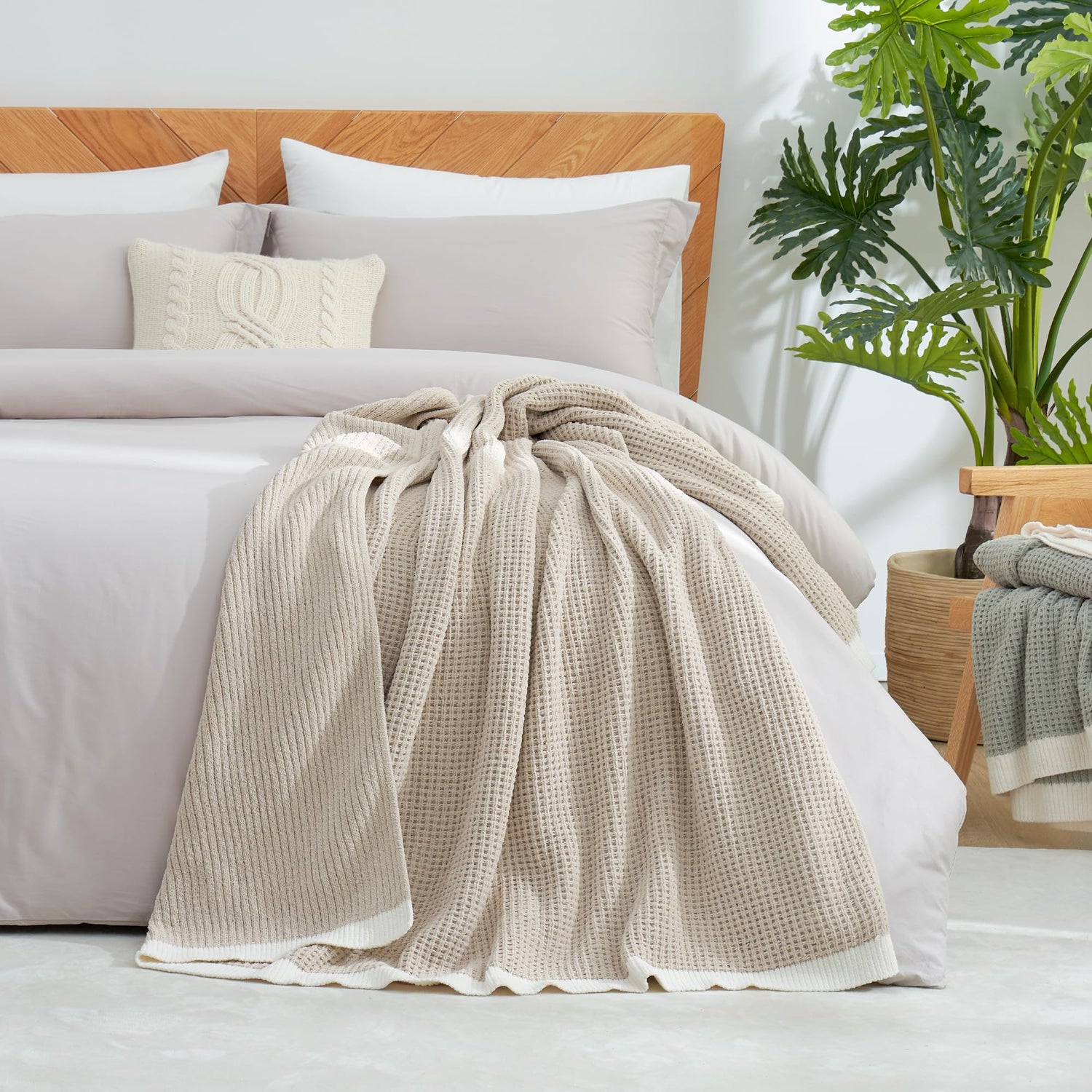 Amélie Home Waffle Throw Blanket for Couch, Soft Cozy Chenille Knit Blanket Warm Decorative Throw for Sofa, 50"x60", Beige
