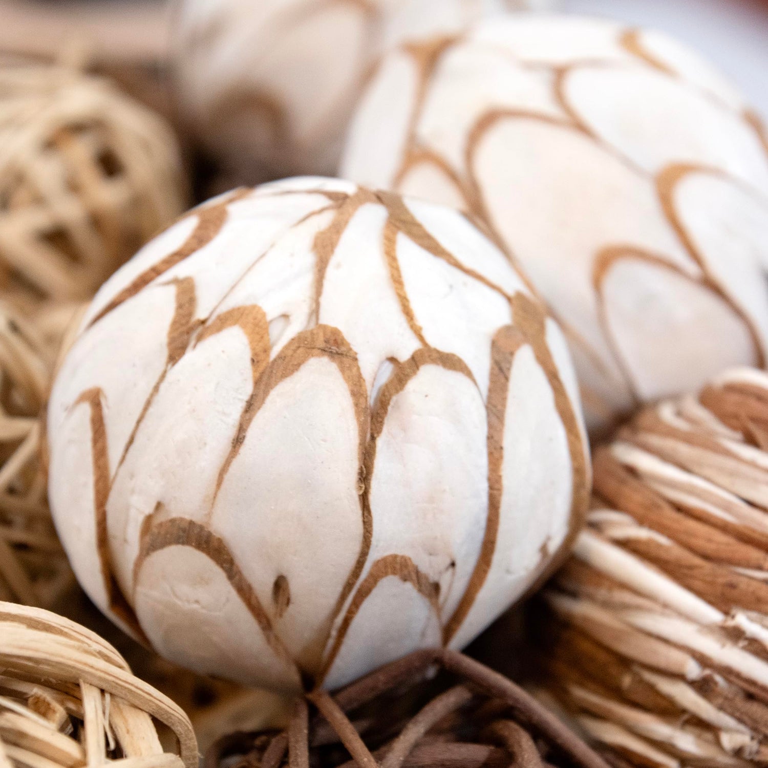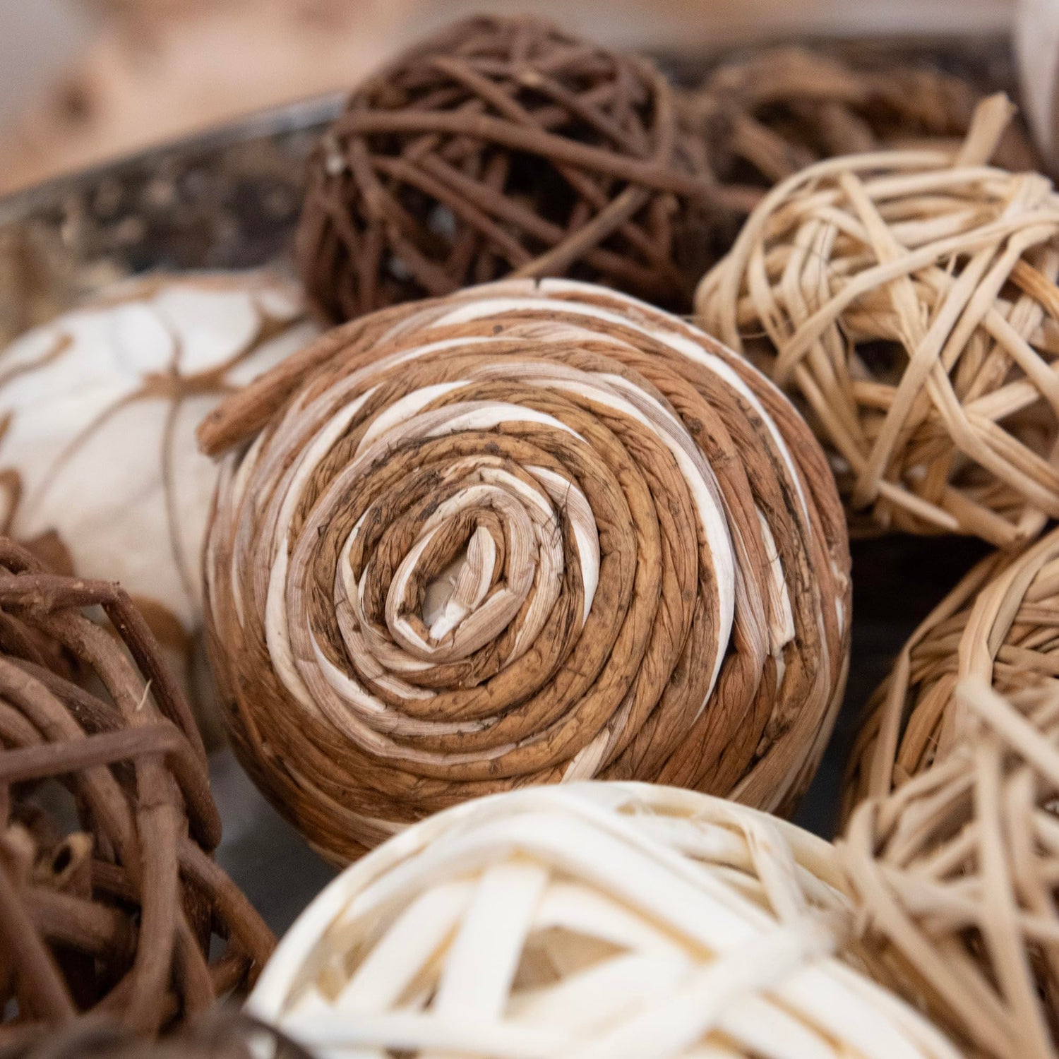 Details: Decorative Ball bag filled with orbs decorative accessories and rattan pieces.