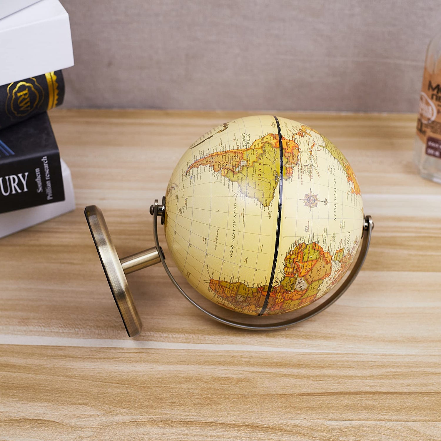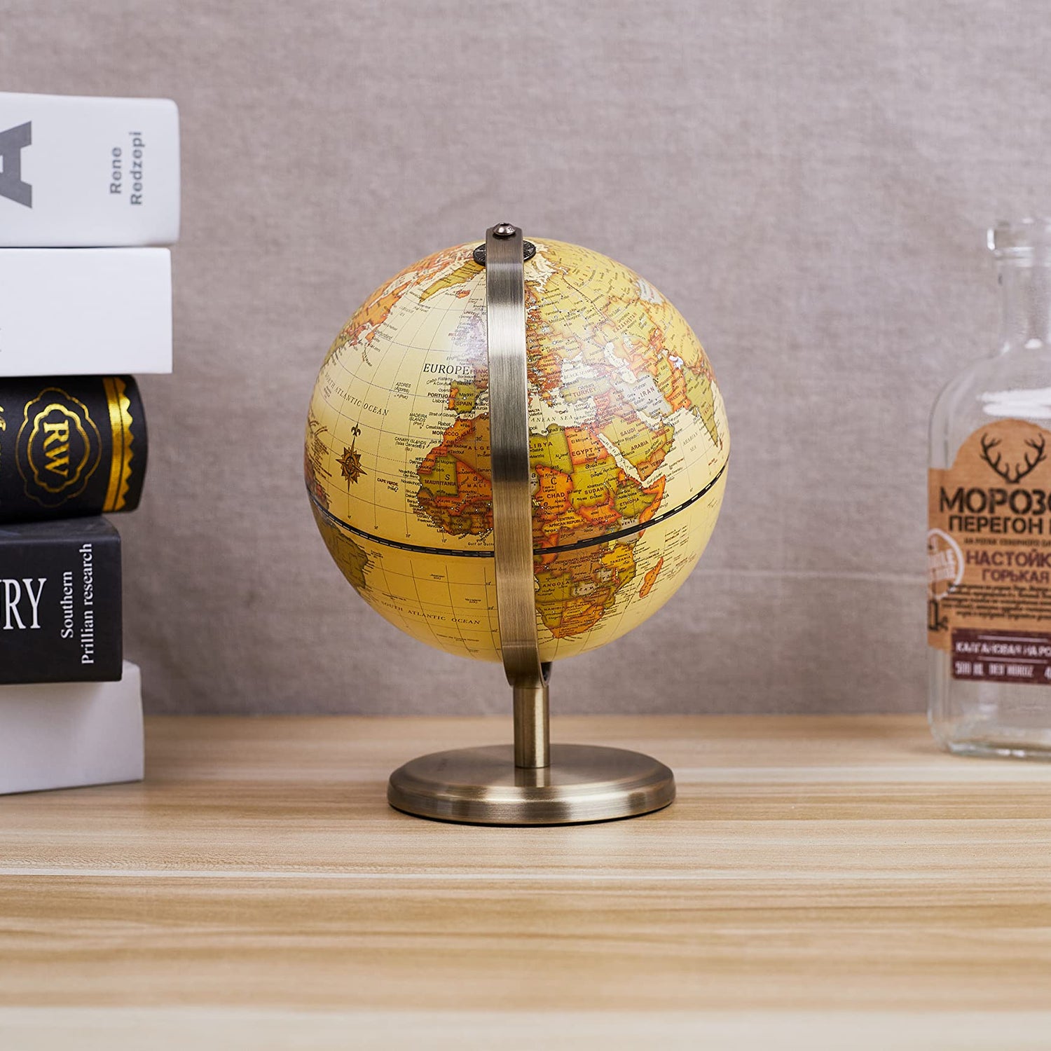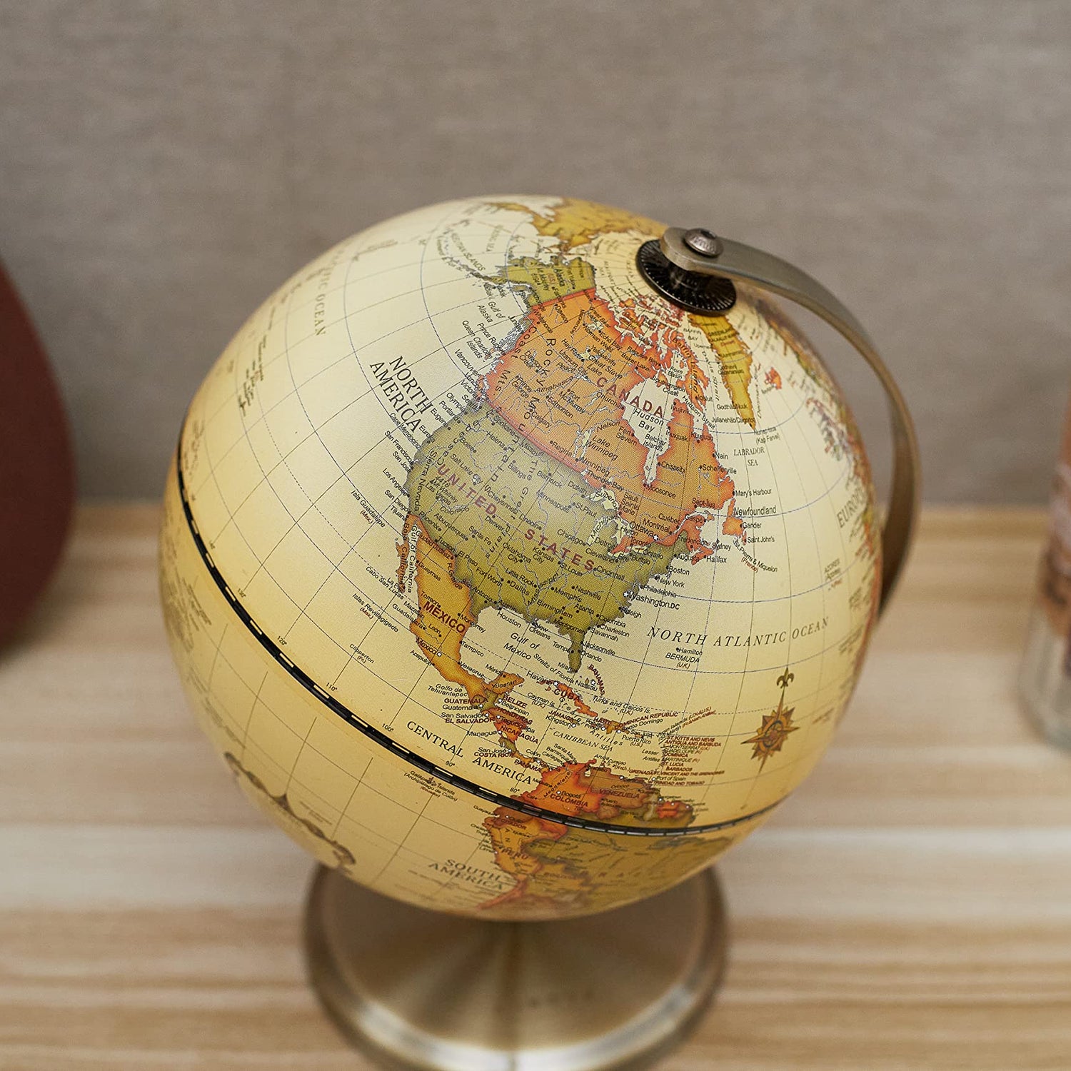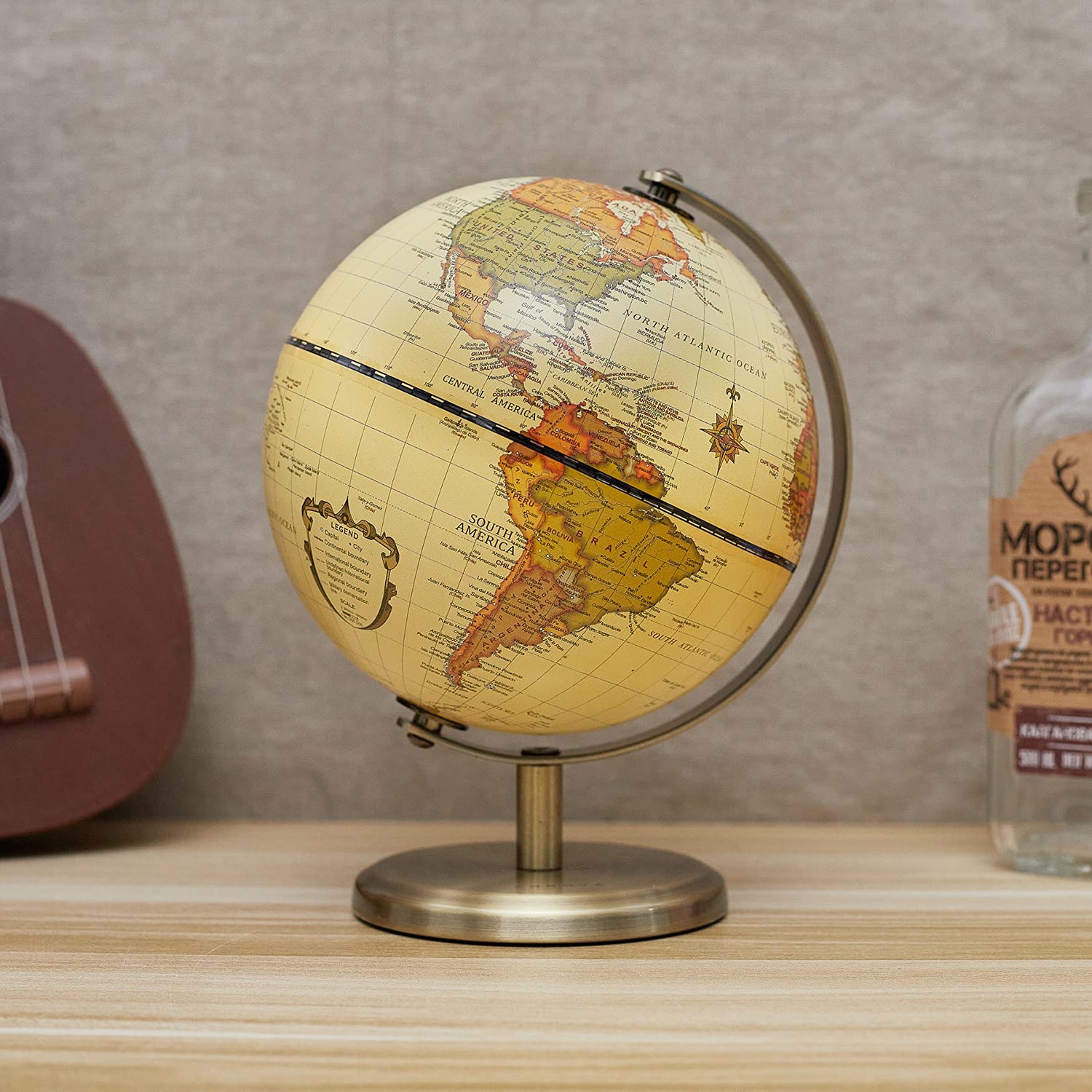 - MORE THAN DECORATION: Antique Globe (5.5-inch) has high quality printing which is fine and clear, led to a very easy and enjoyable experience when one to read the geographical sphere. It displays countries, political boundaries, capital cities, major cities, and more, feel free to use it every day and refer to it anytime.