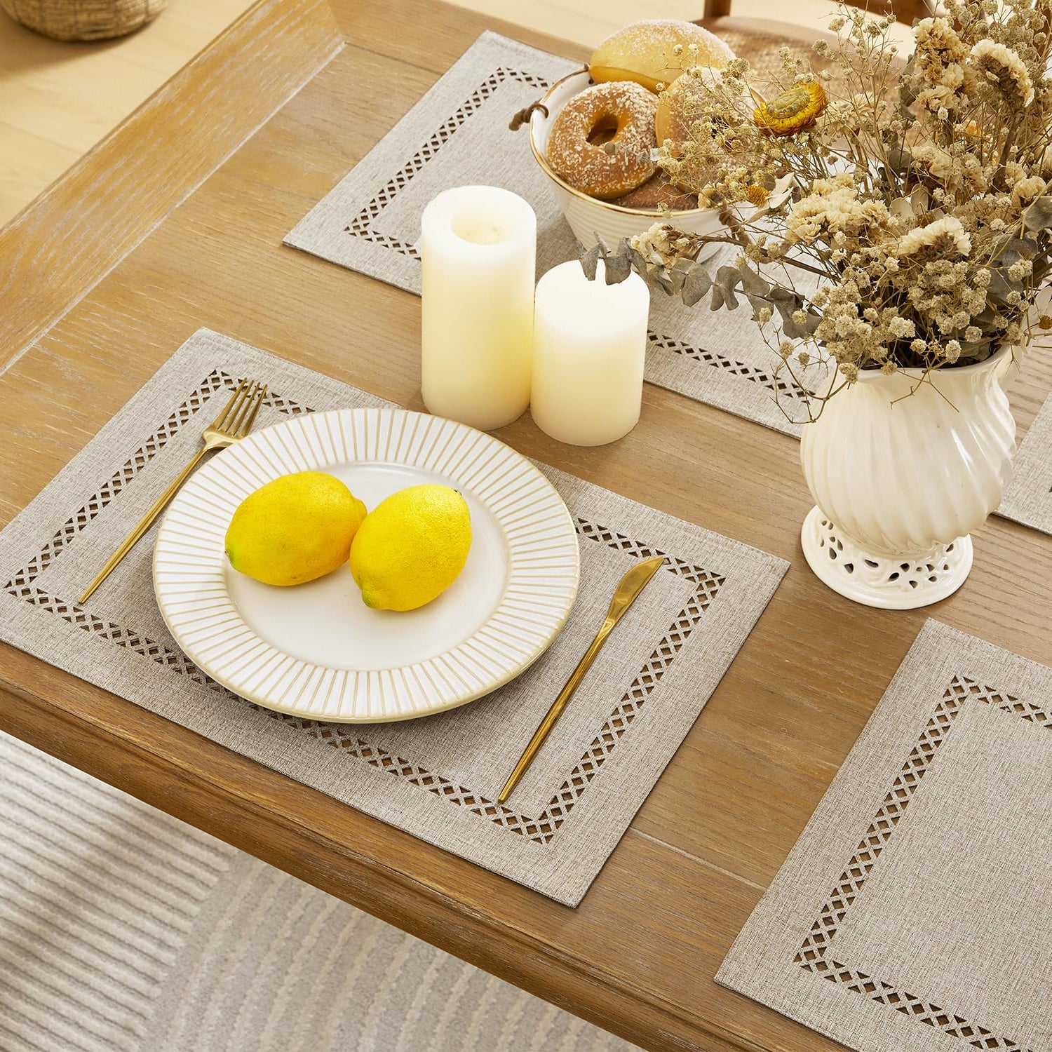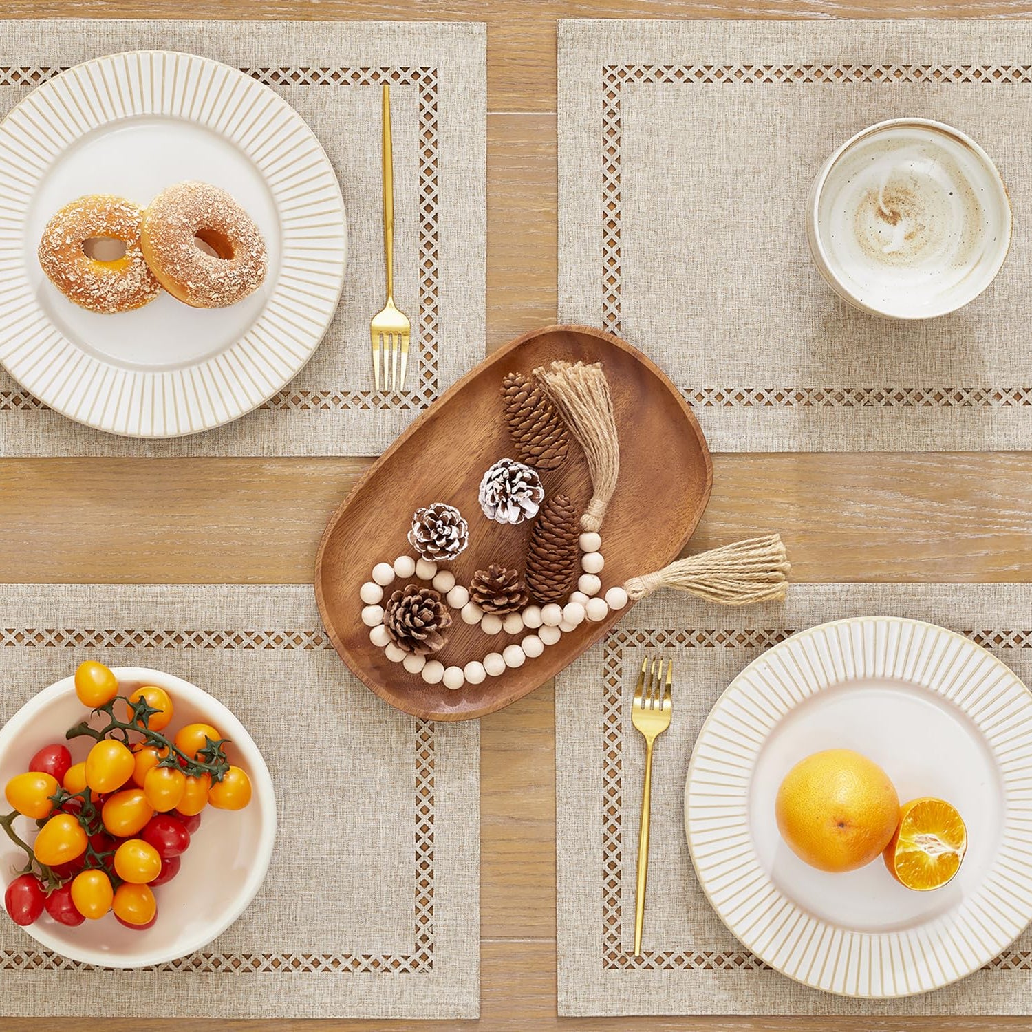 - Unique Design: Rustic geometric hollow design gives an unique charm of the placemat. Two-tier design linen style classic place mats can protect your dinner table from scratches and stains and improve your dining experience.