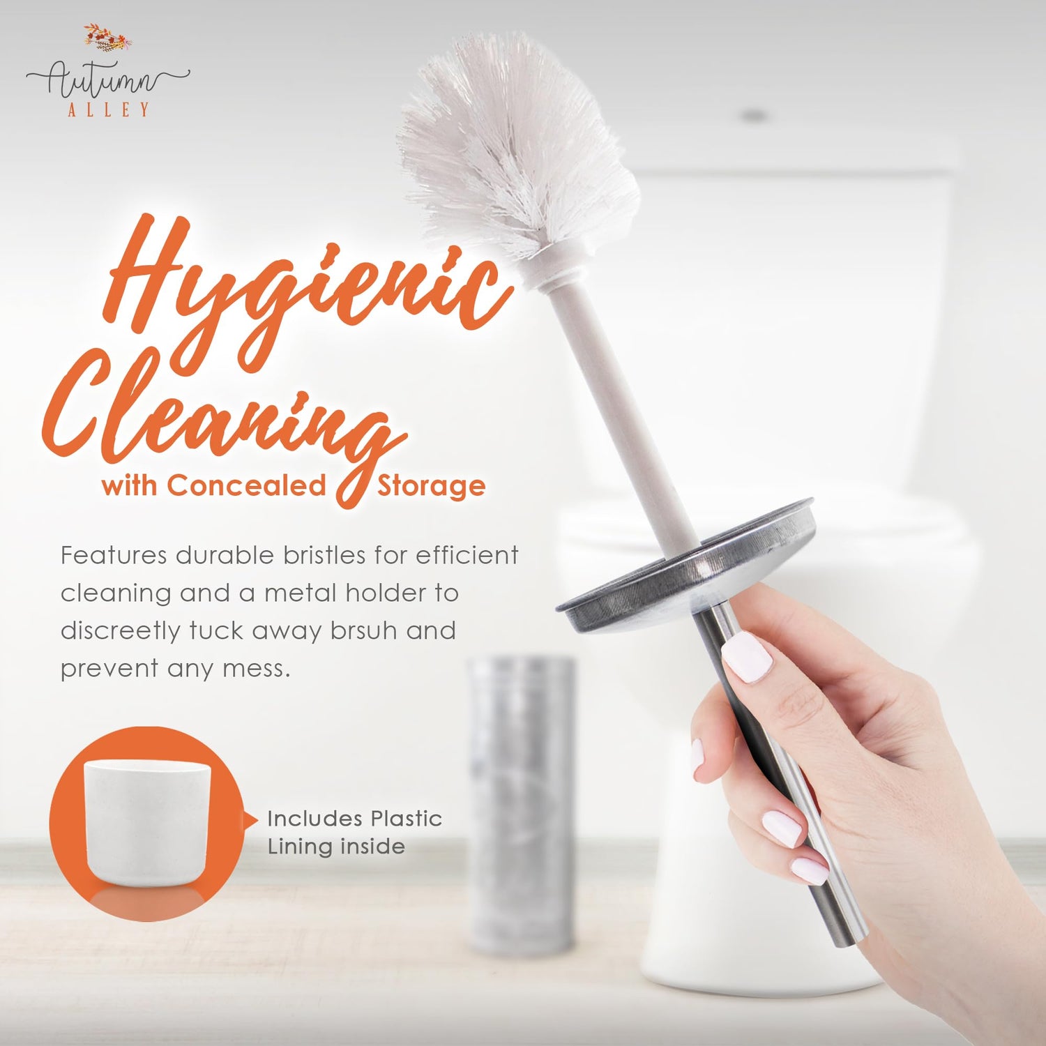 - Effortless Cleaning Experience - The toilet bowl brush, which conveniently pairs with a rustic bathroom trash can, features high-quality bristles that effectively tackle tough stains and grime, leaving your toilet sparkling clean with minimal effort. Its design complements a farmhouse trash can for bathroom aesthetics, ensuring both style and functionality