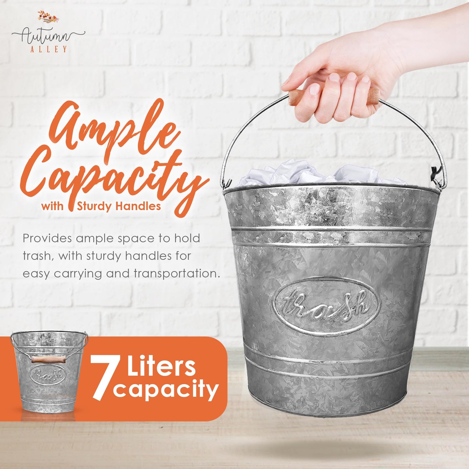 Autumn Alley Farmhouse Bathroom Trash Can and Toilet Brush Set - Rustic Bathroom Accessories for Charming Bathroom Décor, Galvanized, Grey