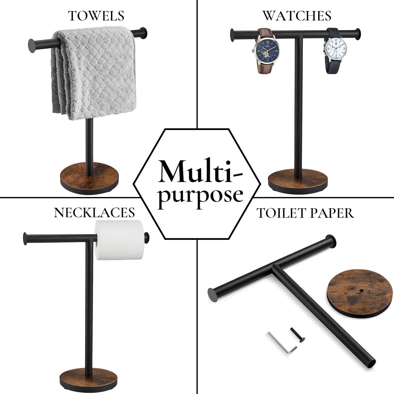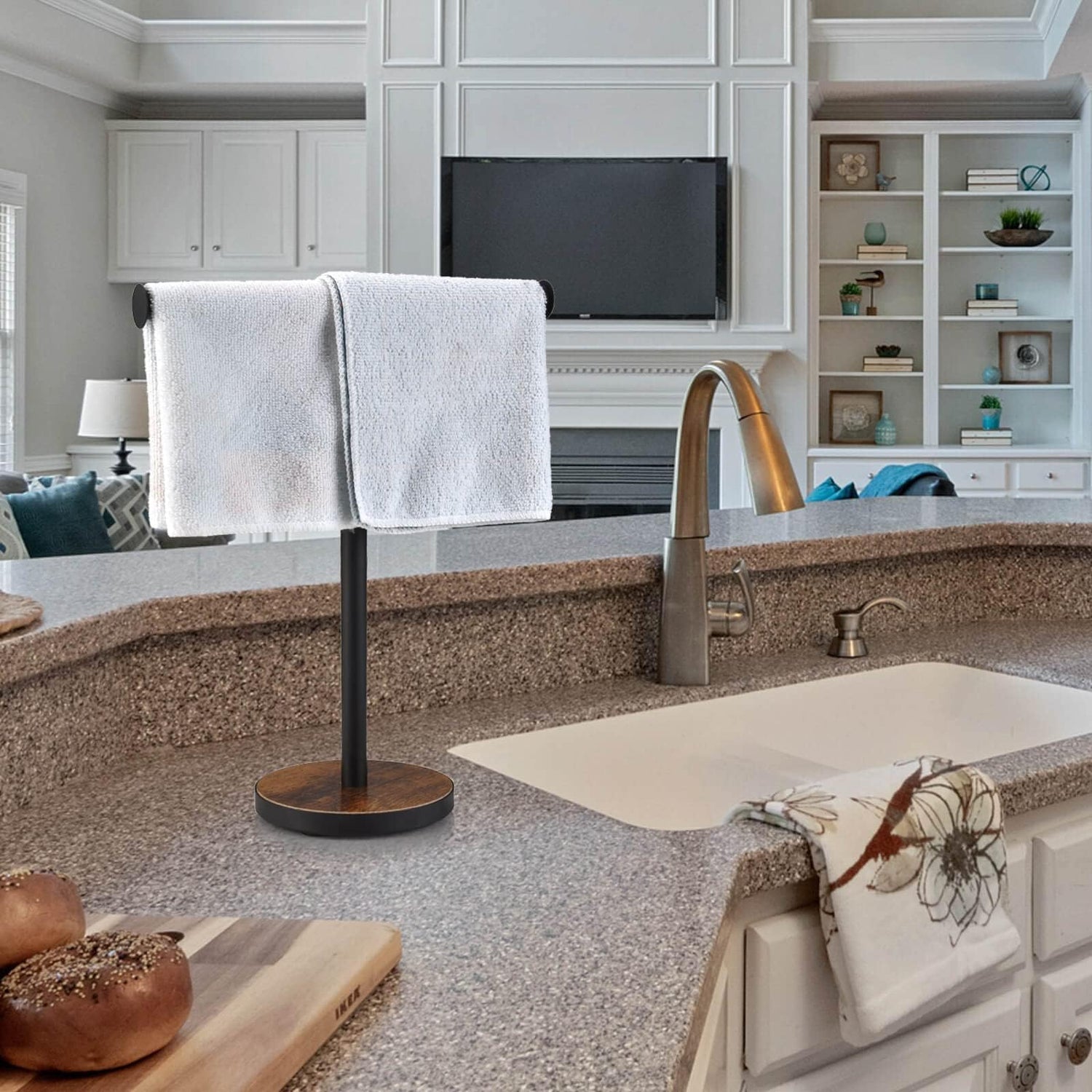 BCOZLUX Towel Holder Stand, Countertop Hand Towel Stand for Bathroom and Kitchen, Free Standing Counter Towel Rack with Weighted Wood Base, Rustic Black and Brown