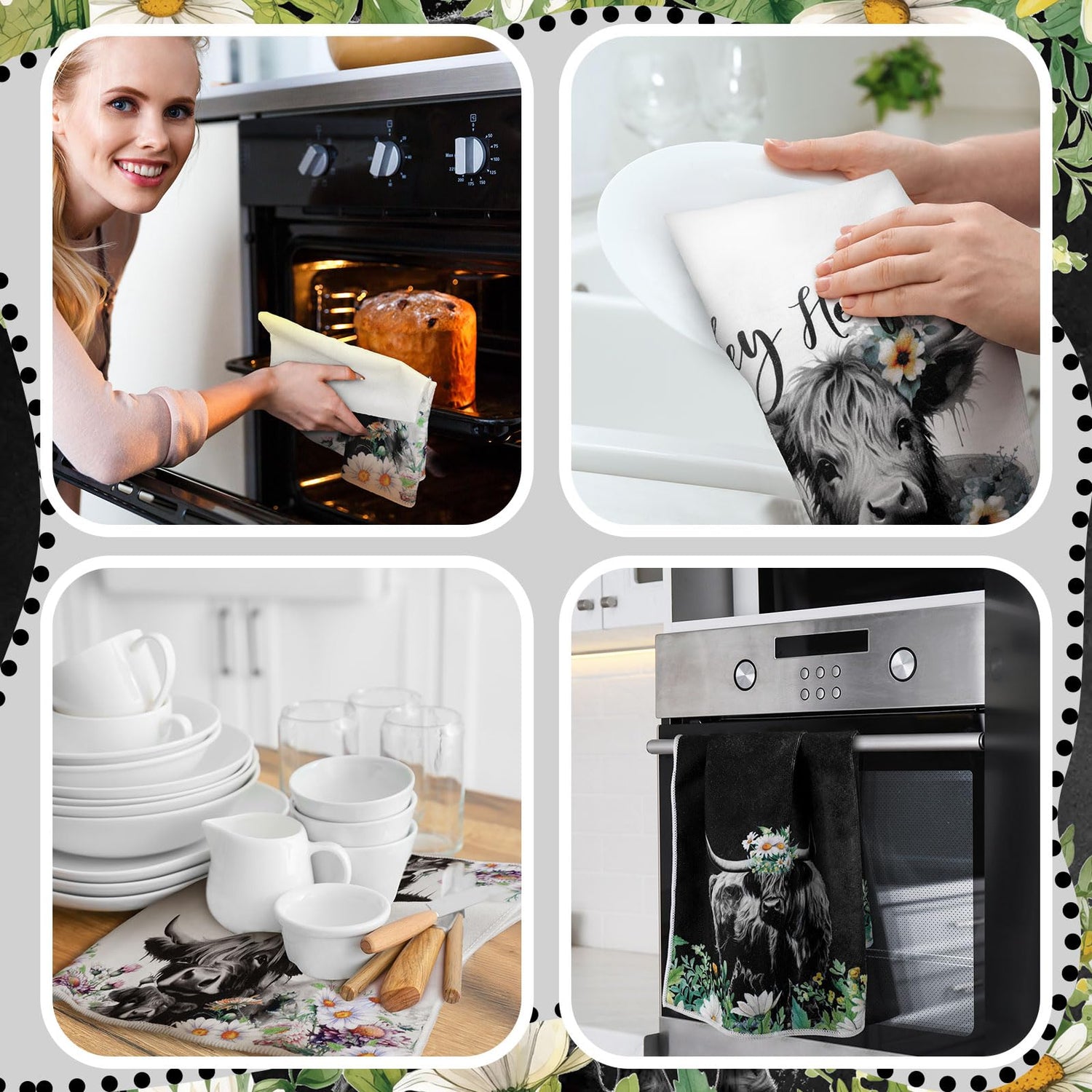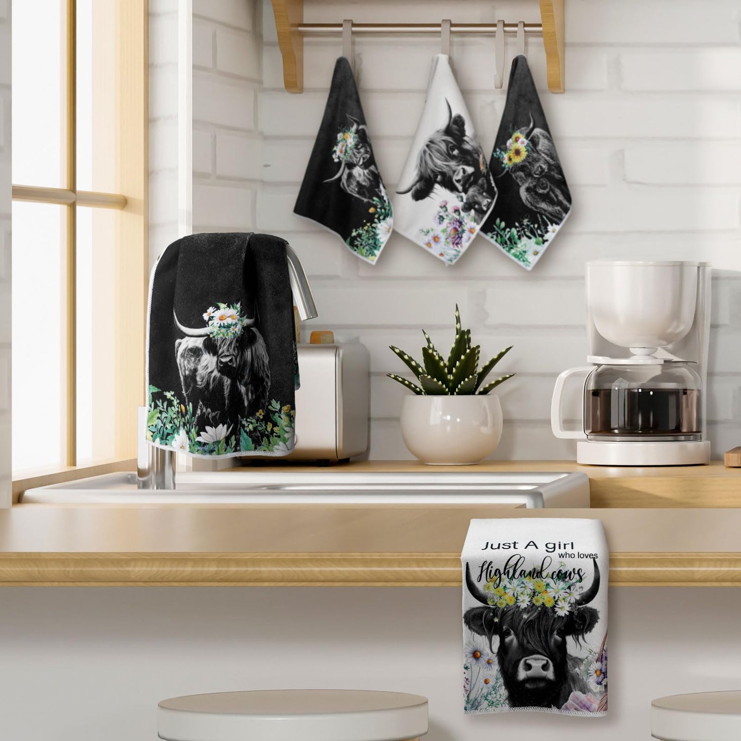 - What You Get: you will receive a total of 6 different styles of highland cow themed kitchen towels, with enough quantity and novelty styles to meet your daily needs for cleaning kitchen dishes, and you can also share them with your family and friend