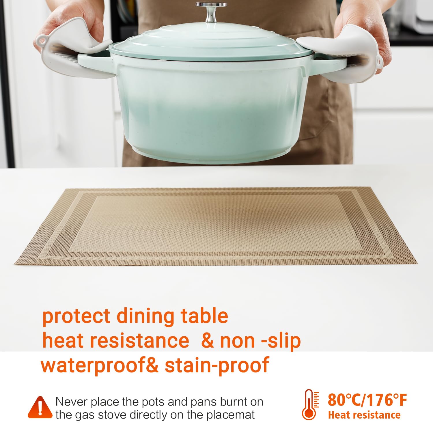 - 👍Best Gift Guide:The beige placemats would be a good decoration and life quality for your home, restaurant, kitchen, hotel and business office.The table place mats make every meal more enjoyable and they are great gift idea for all occasions, Christmas, Wedding, Fathers Day, Mothers Day, Valentines.