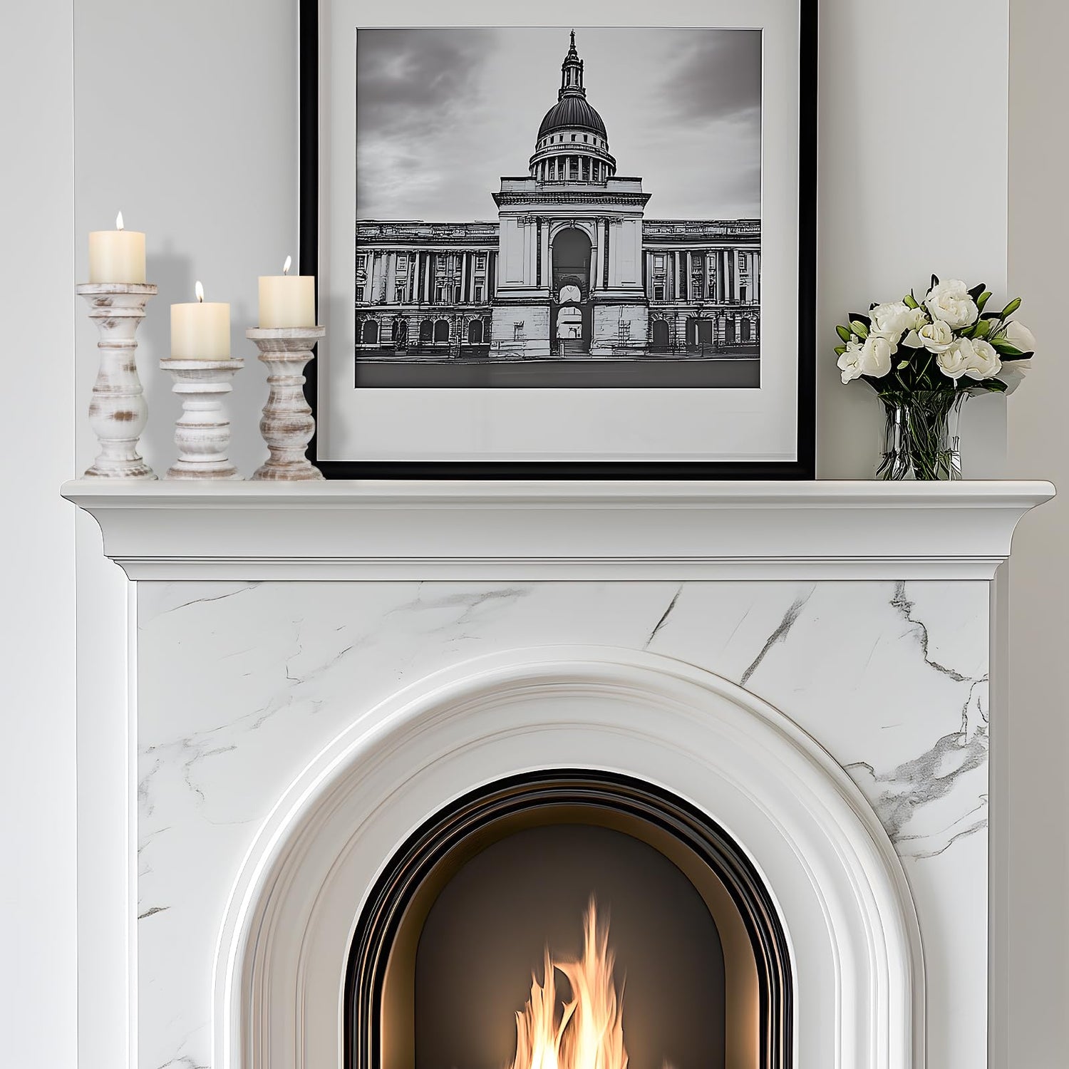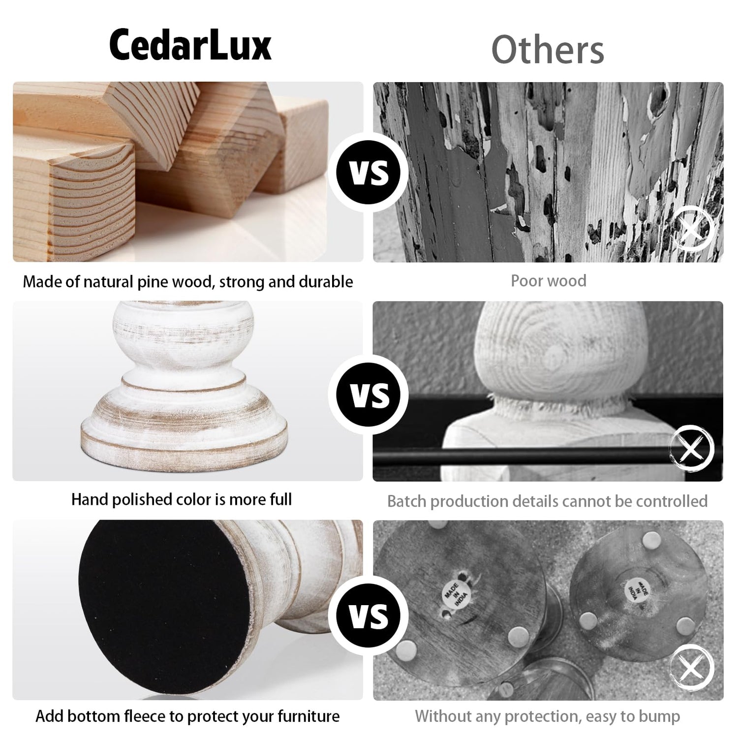 - [RUSTIC CANDLE STICK STANDS] The farmhouse candle holder features a vintage unique and exquisite curved design, And the rich white finish design and old-world textures blend for a refined classic elegant taste. Place your favorite pillar candle on the candle holder wood and the classic rustic wooden candle holder will become an elegant table decoration.