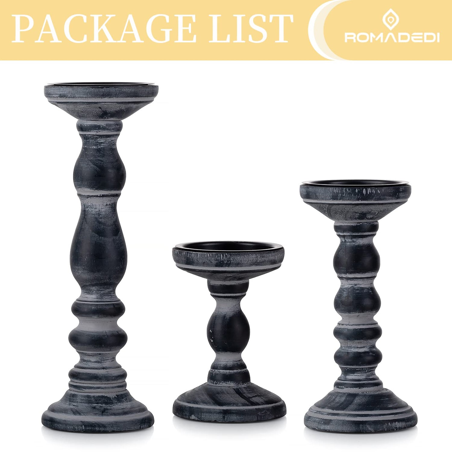 • Premium Quality - Romadedi pillar candle holders are made of natural solid wood, with a metal candle plate on the top for holding candle. The rustic candle holder set is carefully crafted, simple yet classic, very suitable for fireplace mantle, end table or entrance table.