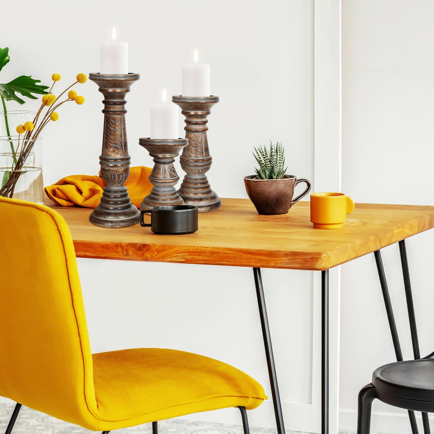 • Set of 3 Candle Holders: Includes three candle holders of varying heights (12'', 9'', and 6'') to add dimension to your decor.