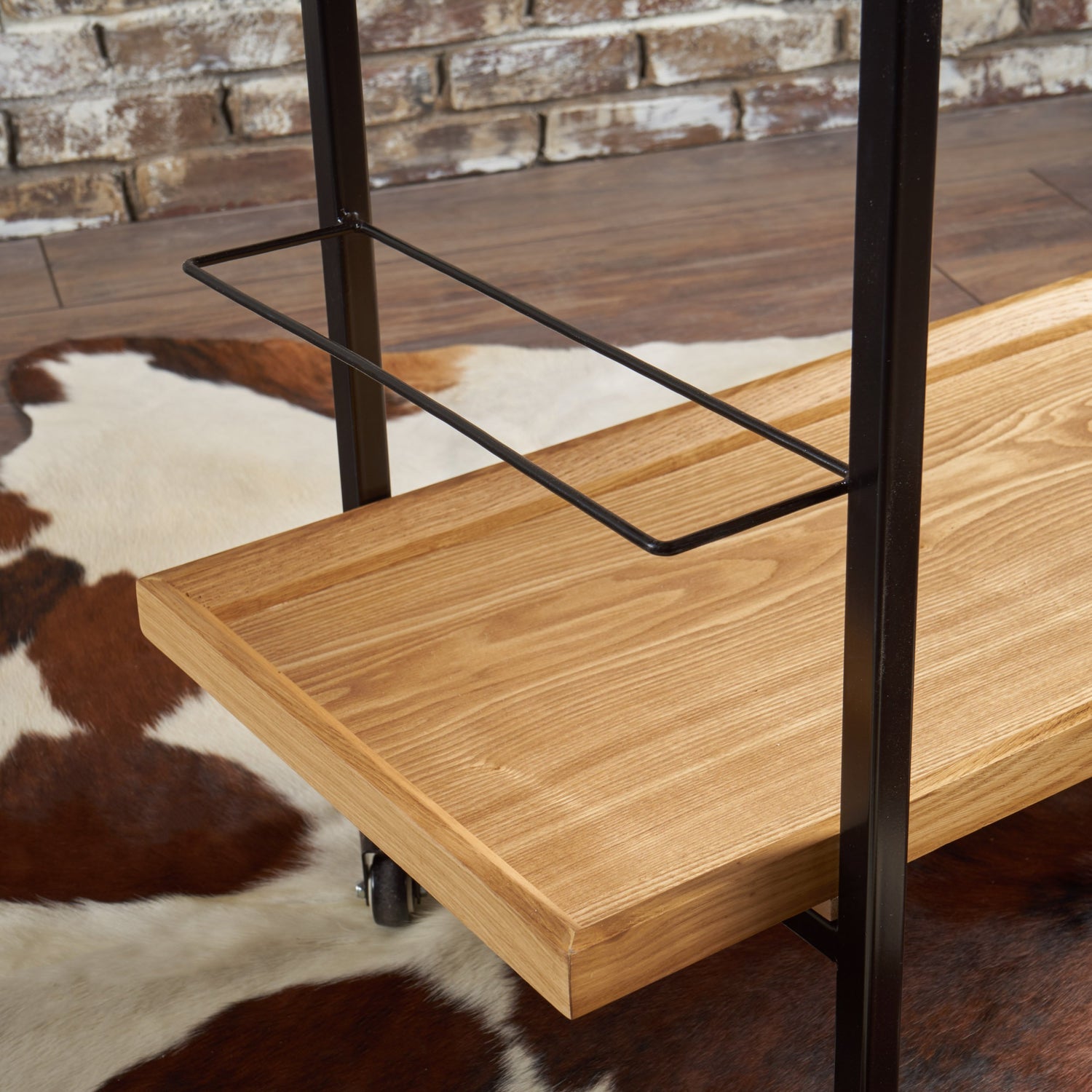 Christopher Knight Home Gerard Industrial Wooden Bar Cart, Natural Finish / Black