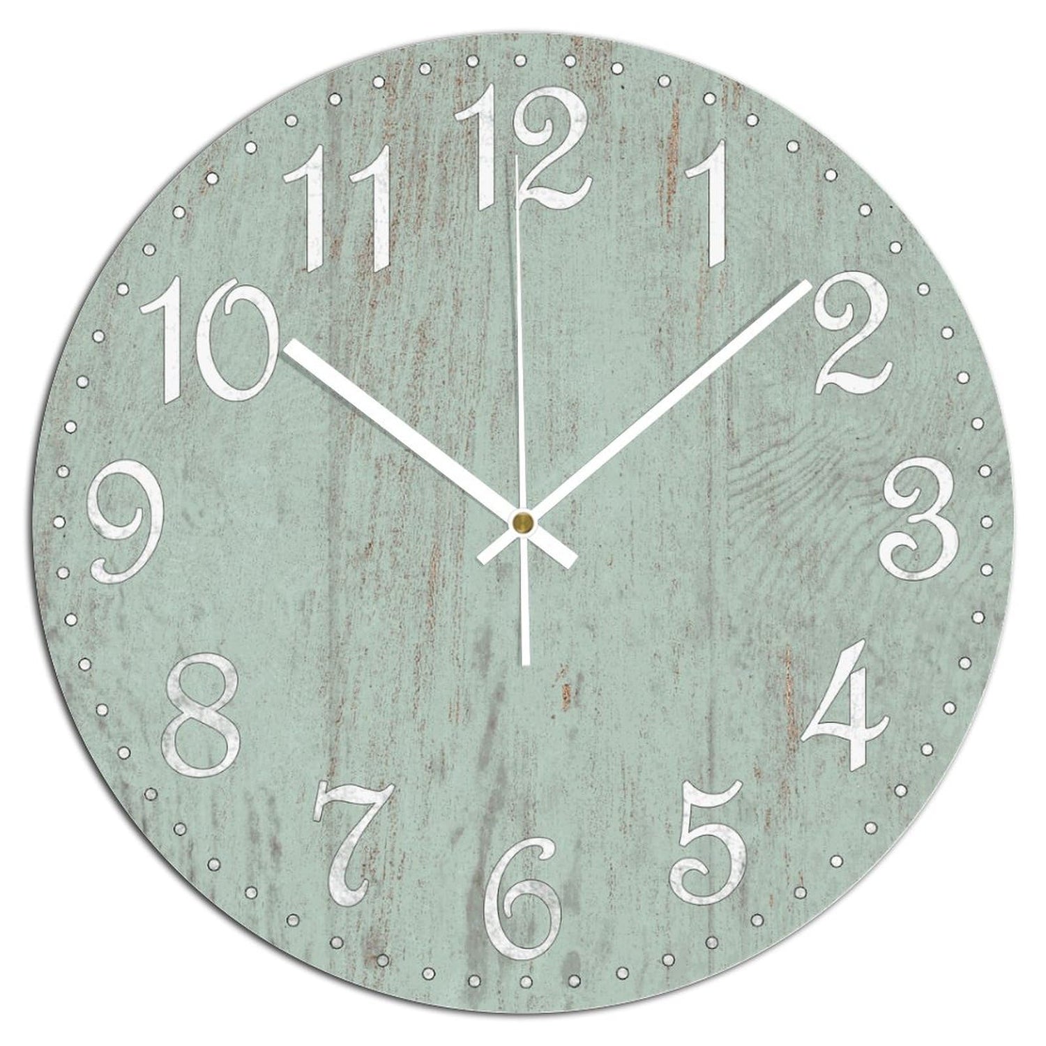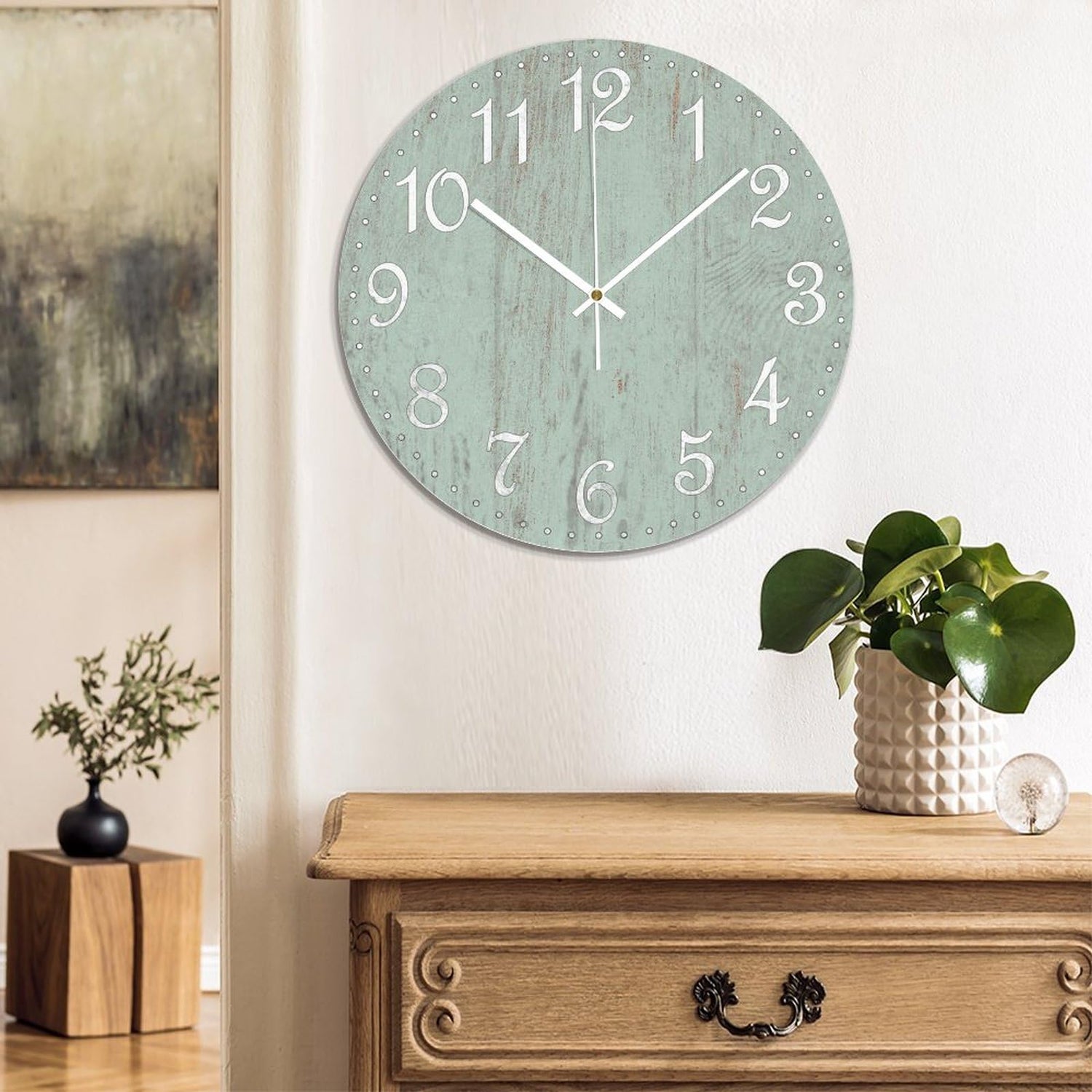 COCOKEN Wall Clock Silent Non Ticking Wooden Clocks Seafoam Green Clock Battery Operated 15in, Round Farmhouse Clock, Rustic Clocks Decor for Home Kitchen Office