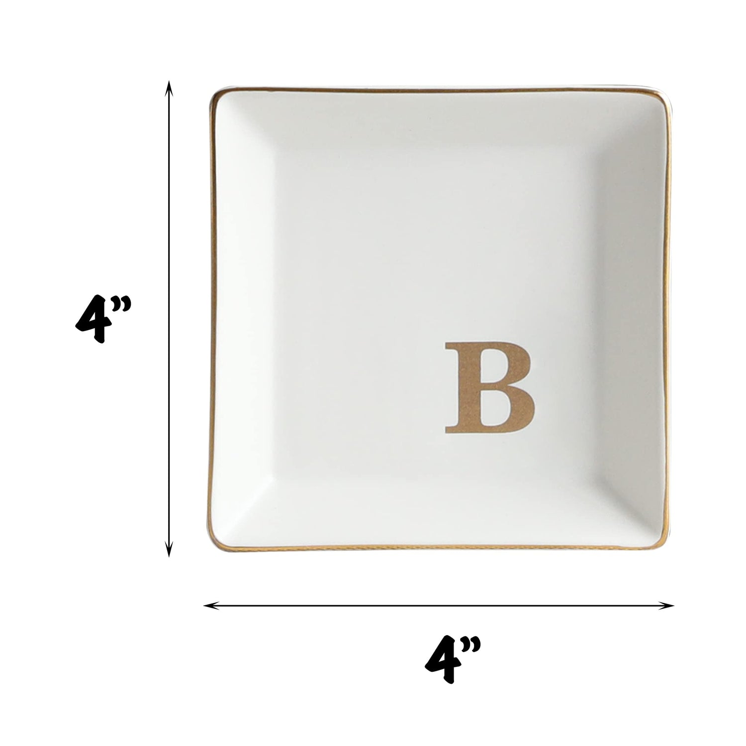 COLLECTIVE HOME - Ceramic Jewelry Tray, Monogram Decorative Trinket Dish for Rings Earrings Necklaces Bracelet Watch Keys, Birthday Mother's Day Christmas Gift for Women, 4" x 4" (B)