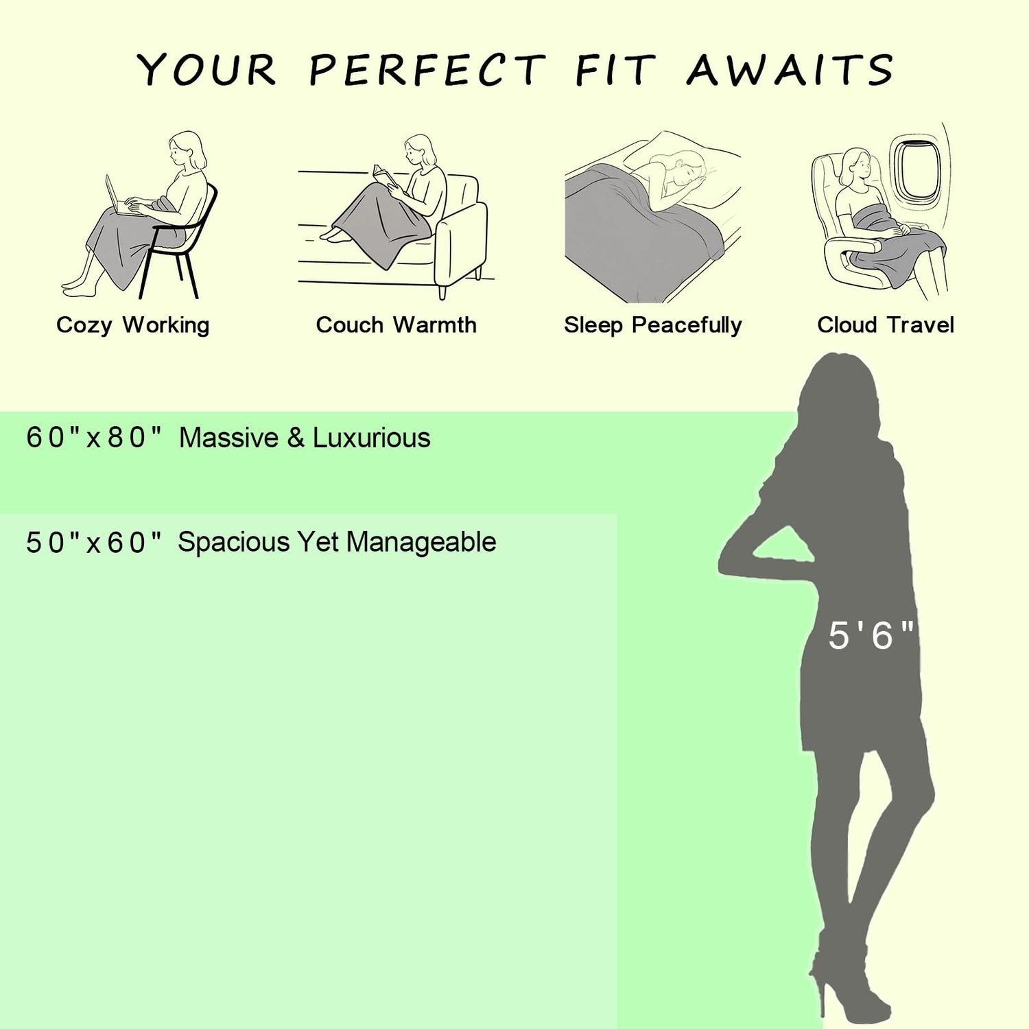 • LIGHTWEIGHT, WARM THROW BLANKET: 50 x 60 in (127 x 152 cm) / 2LBS. The perfect versatile size. Lightweight and keeps you nice and warm, suitable for all seasons. This throw blanket provides the perfect level of coziness.