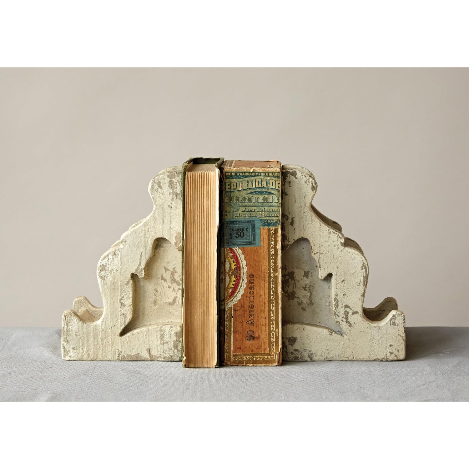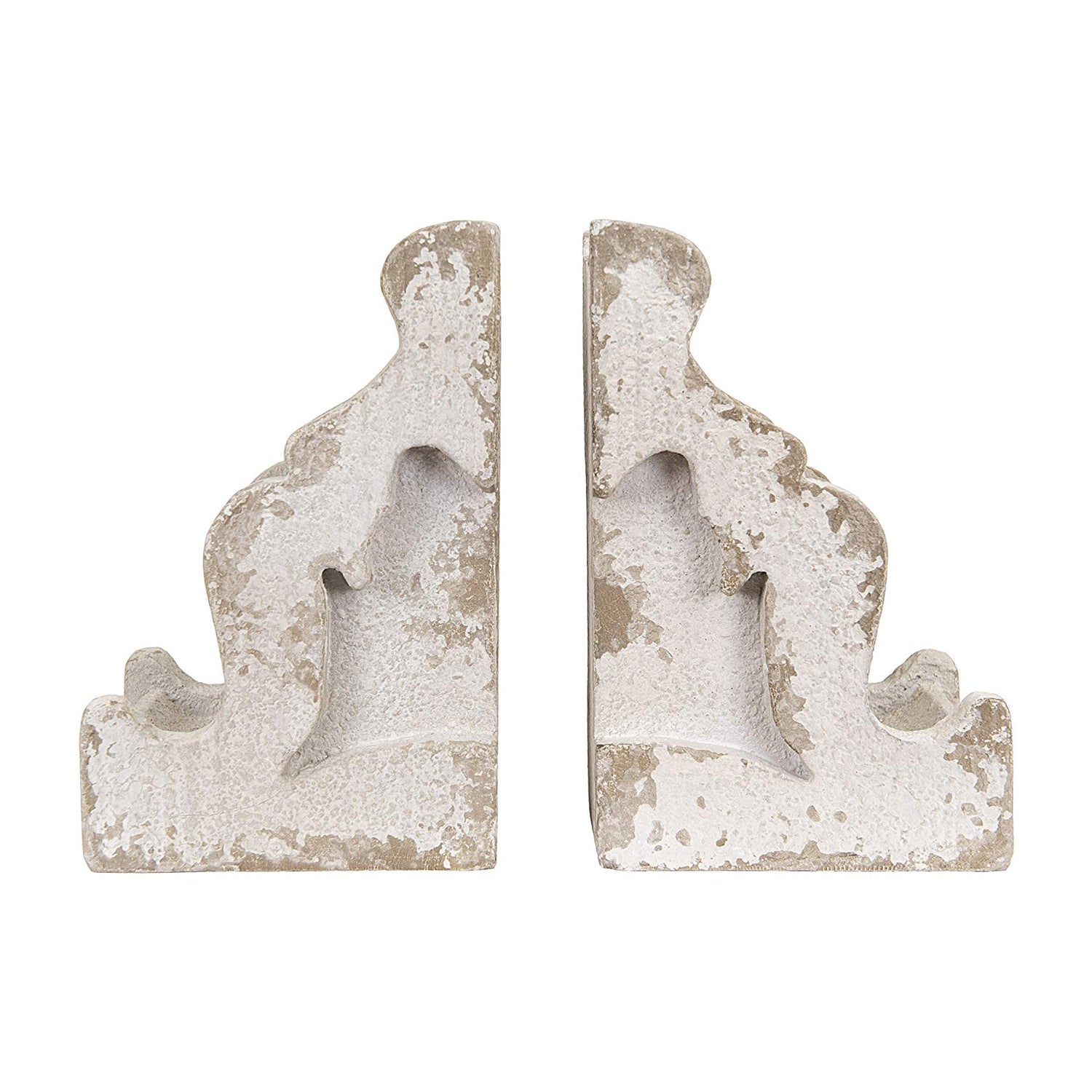 Creative Co-Op Distressed White Corbel Shaped Bookends (Set of 2 Pieces)