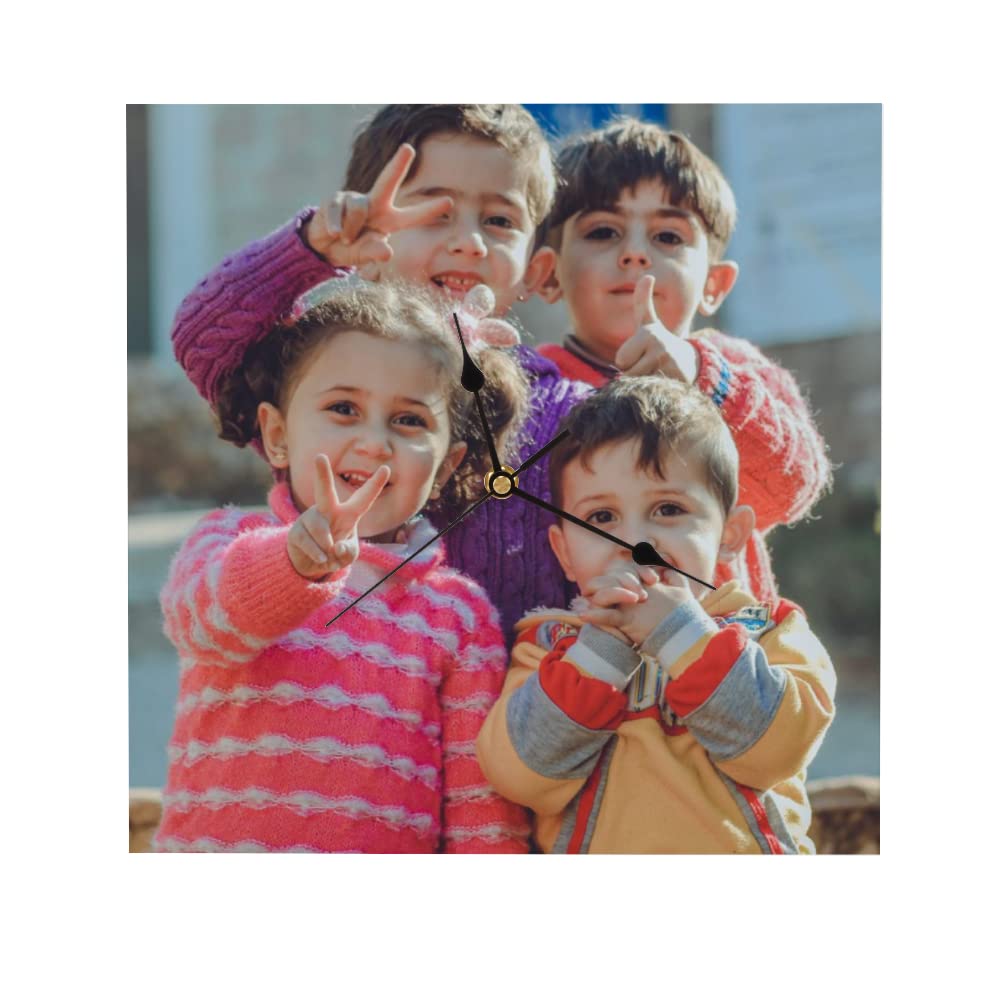 Custom Wooden Wall Clock with Photo Image Pictures, Personalized Square Wood Clock for Wall 10x10 Inch, Farmhouse Home Decorations for Bedroom Living Room Non-Ticking Wall Clock Add Family Name