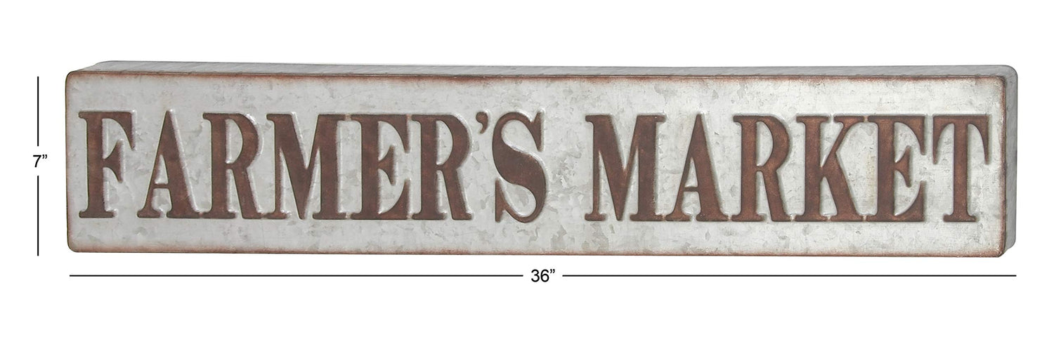 Deco 79 59449 Distressed Iron Farmer's Market Wall Sign, 7" x 36", Brown/Gray