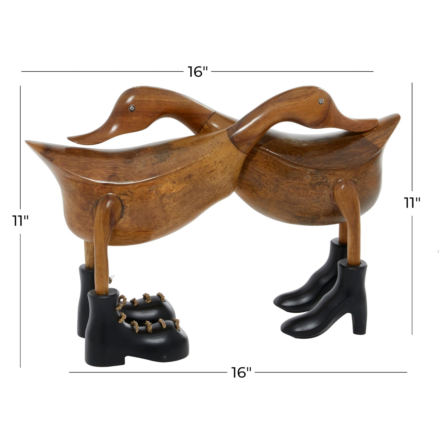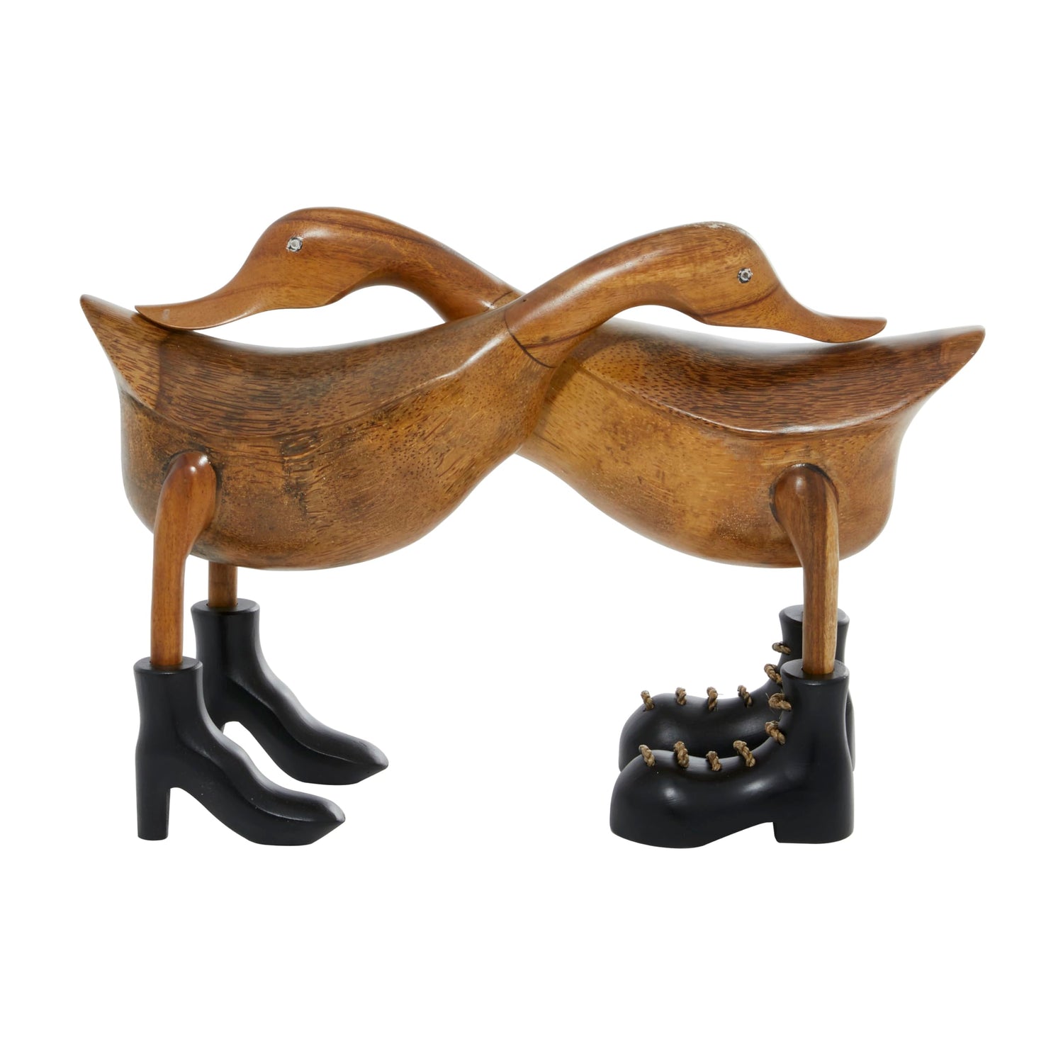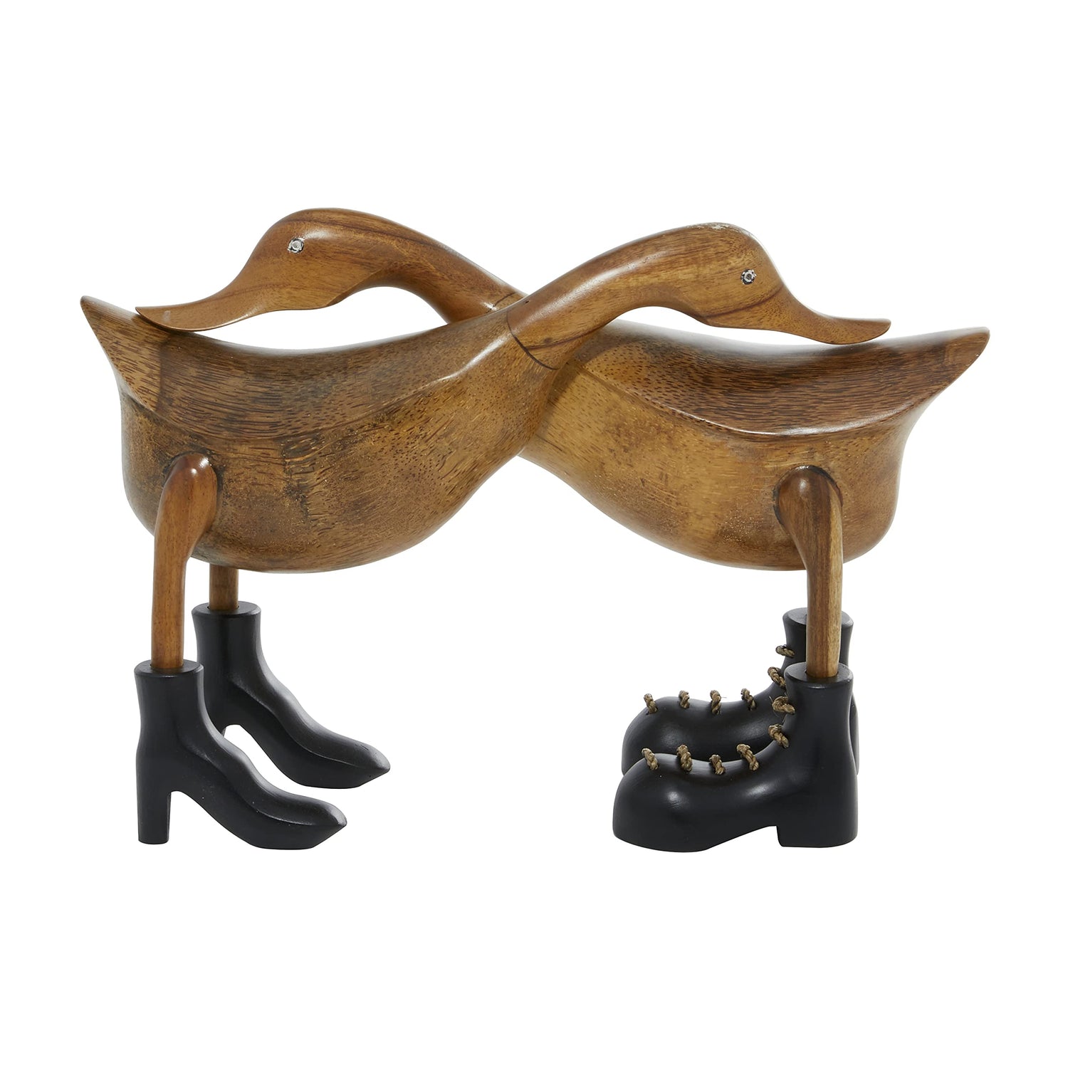 - BROWN AND BLACK HOME DECOR FIGURINE: Both ducks are brown and polished to a shine, with black shoes