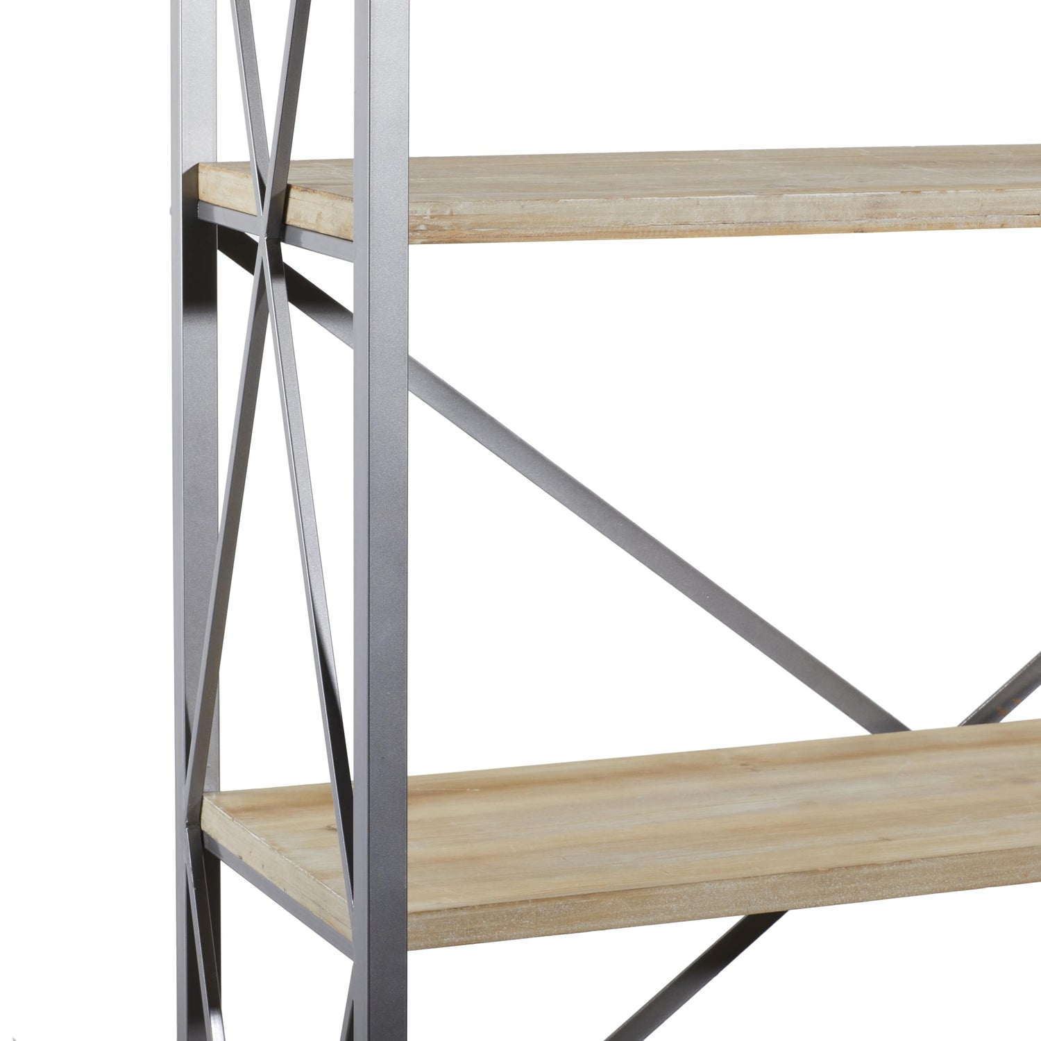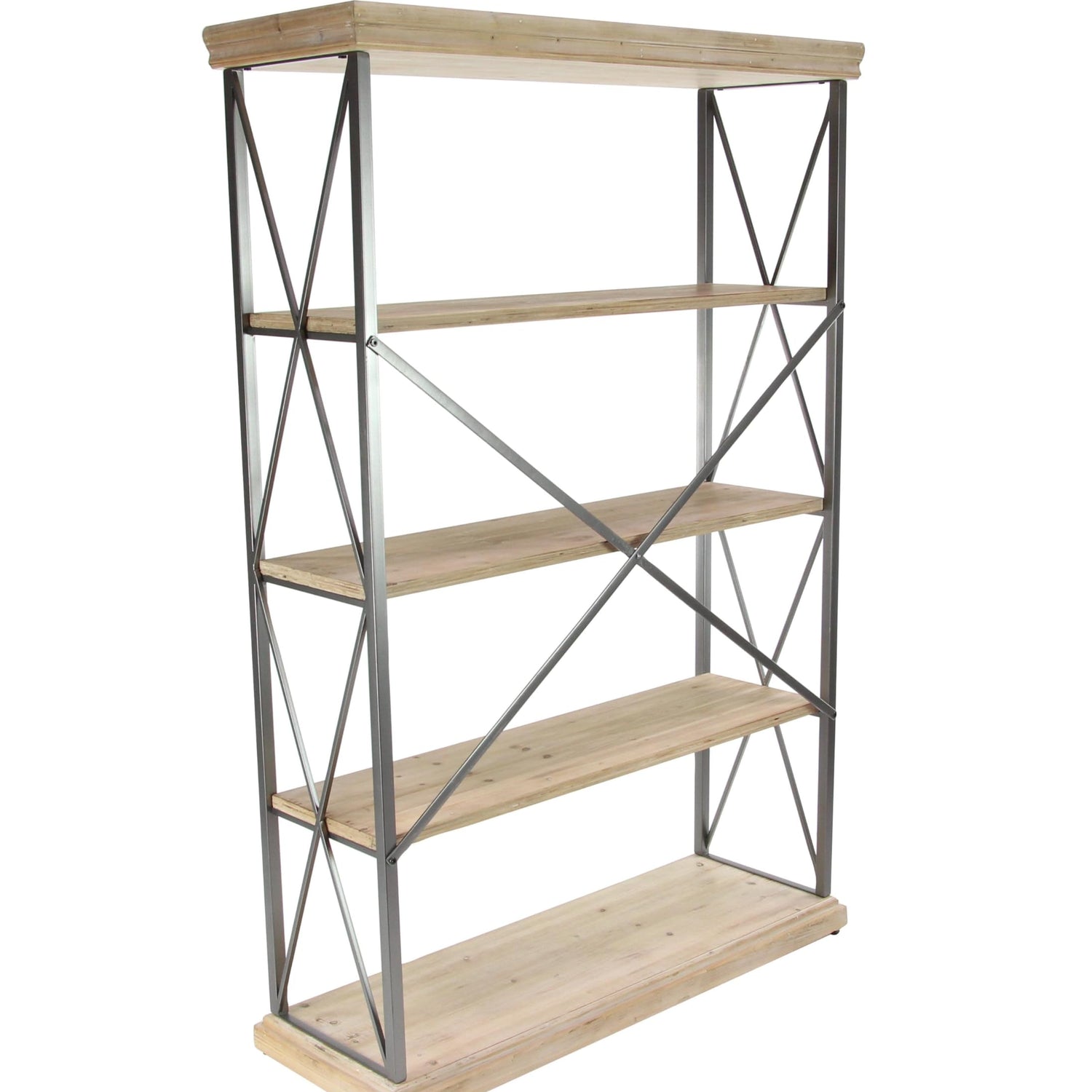 Details: Create a rustic display with this wooden shelving unit with hardcover books, organic vases, large beaded garlands and potted plants. This item ships in 1 carton. Suitable for indoor use only. Some assembly required. Maximum weight limit is 30 lbs. This is a single shelving unit. Fir shelving unit features 5 shelves. Industrial style.