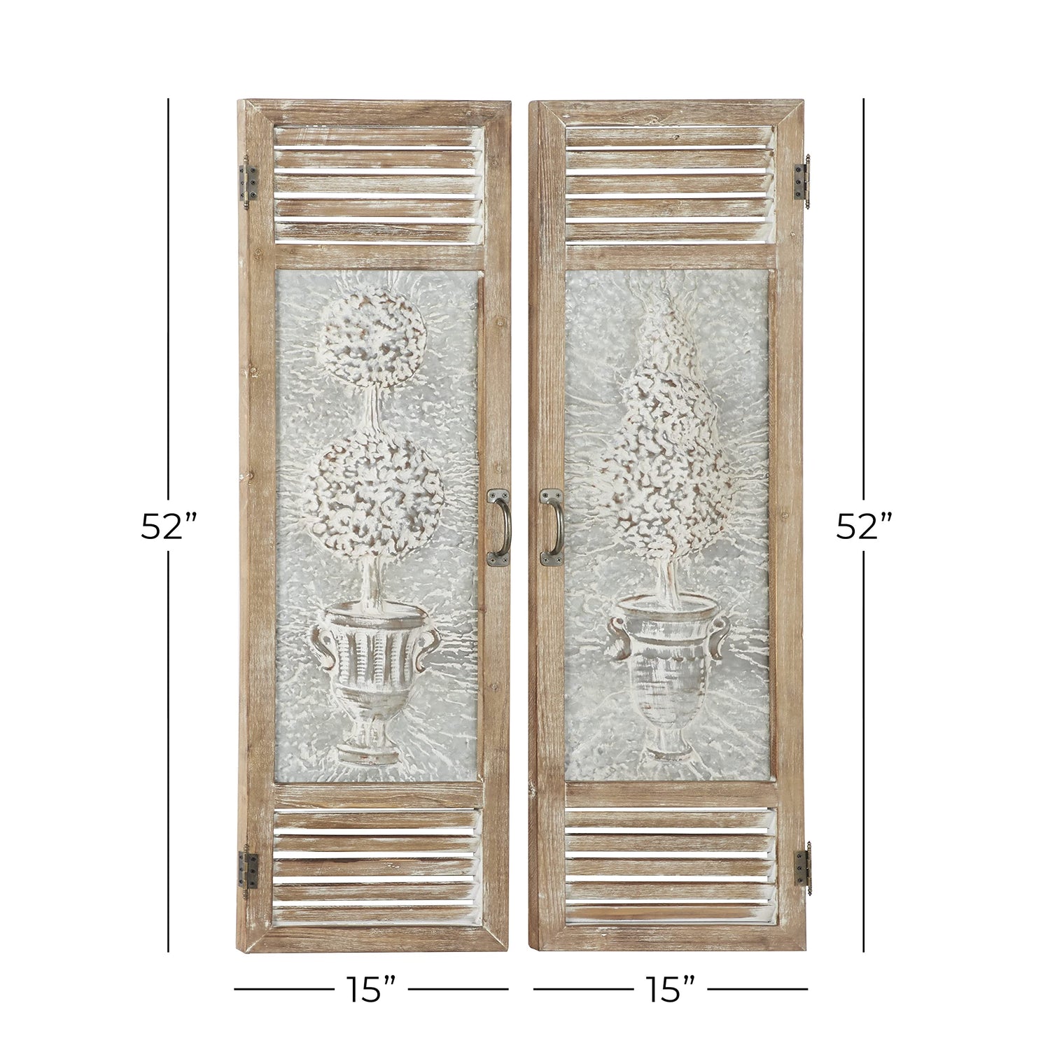 Deco 79 Metal Tree Home Wall Decor Relief Wall Sculpture with Louvered Design, Set of 2 Wall Art 15"W, 52"H, Brown