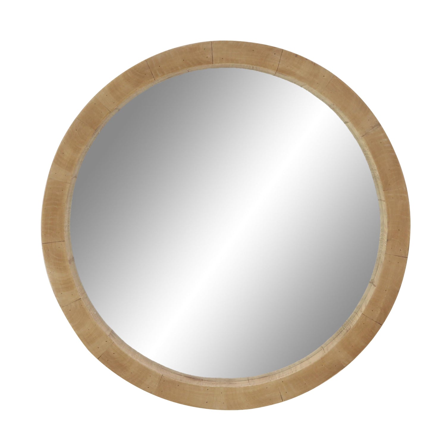 - WOOD DECORATIVE WALL MIRROR: Item features a circular mirror frame made from Chinese fir wood and reinforced with MDF wood, interior reflective round mirror
