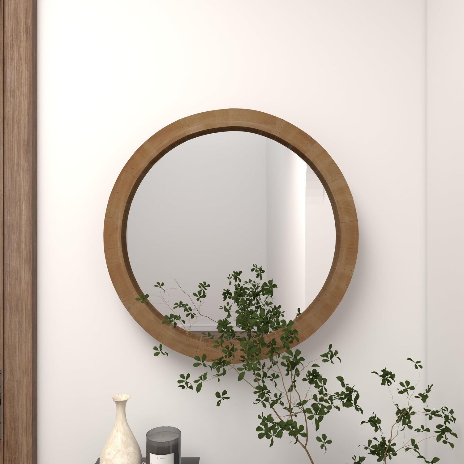 - BROWN MIRROR FOR WALL: Round wall mirror carries a simple natural brown wood frame