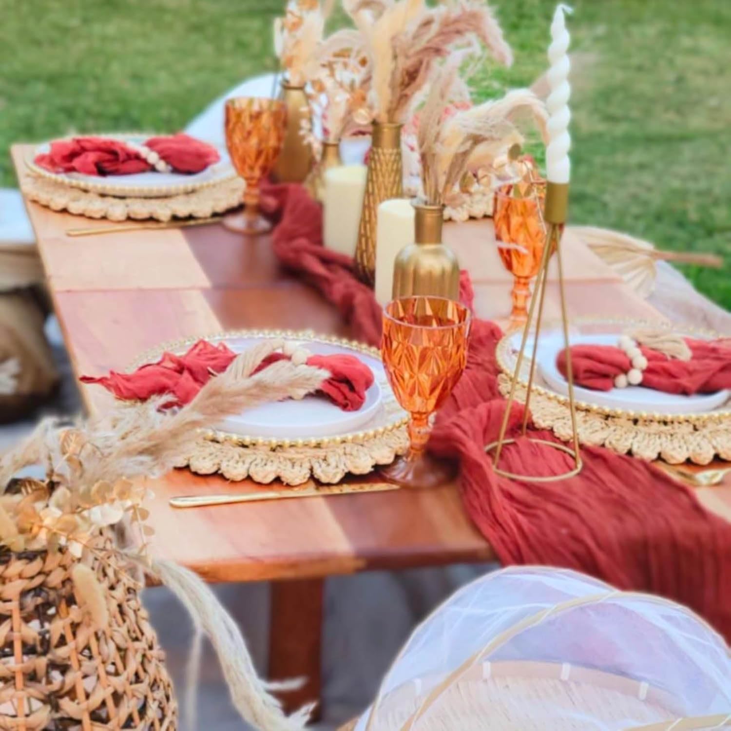 - Functional and Decorative: Protect your table while adding a decorative touch; use them as chargers, placemats, or accent pieces for centerpiece arrangements.