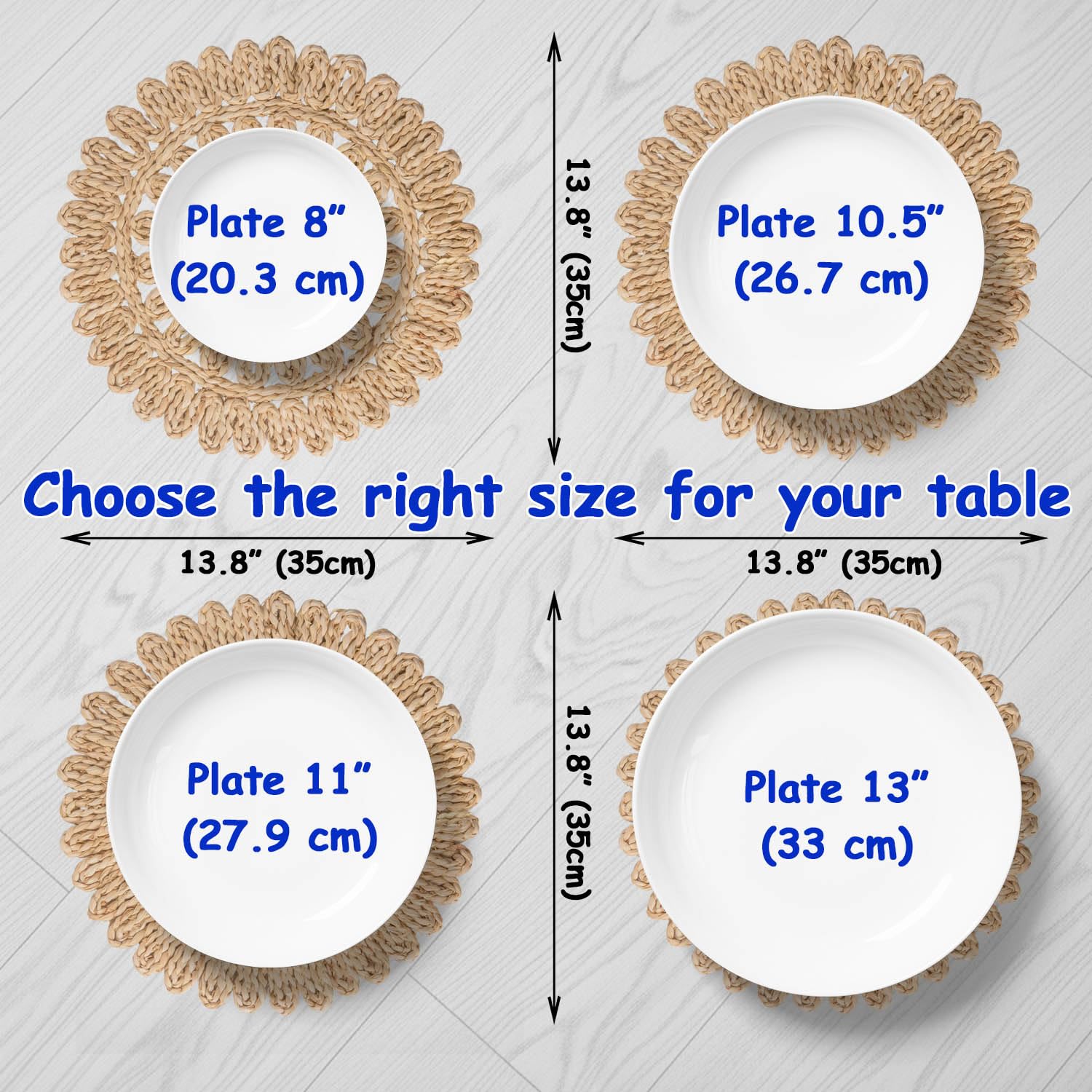 - Durable and Lightweight: Crafted for everyday use, these woven mats are lightweight yet sturdy, making them ideal for both indoor and outdoor dining.