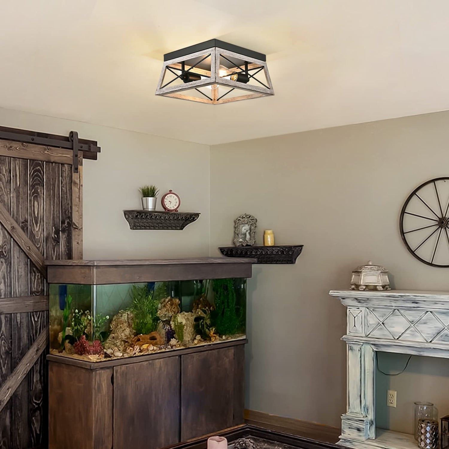 - 【Farmhouse Vintage Style】Retro ceiling light fixture with simple geometric shape; well made with X-shaped anti-rusted metal frame, makes light fixture built to last, wooden grain finish creates a rustic retro house style