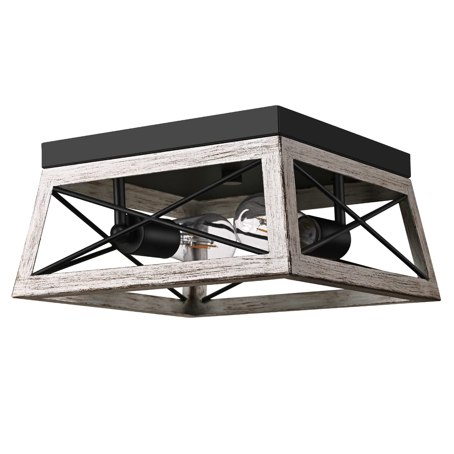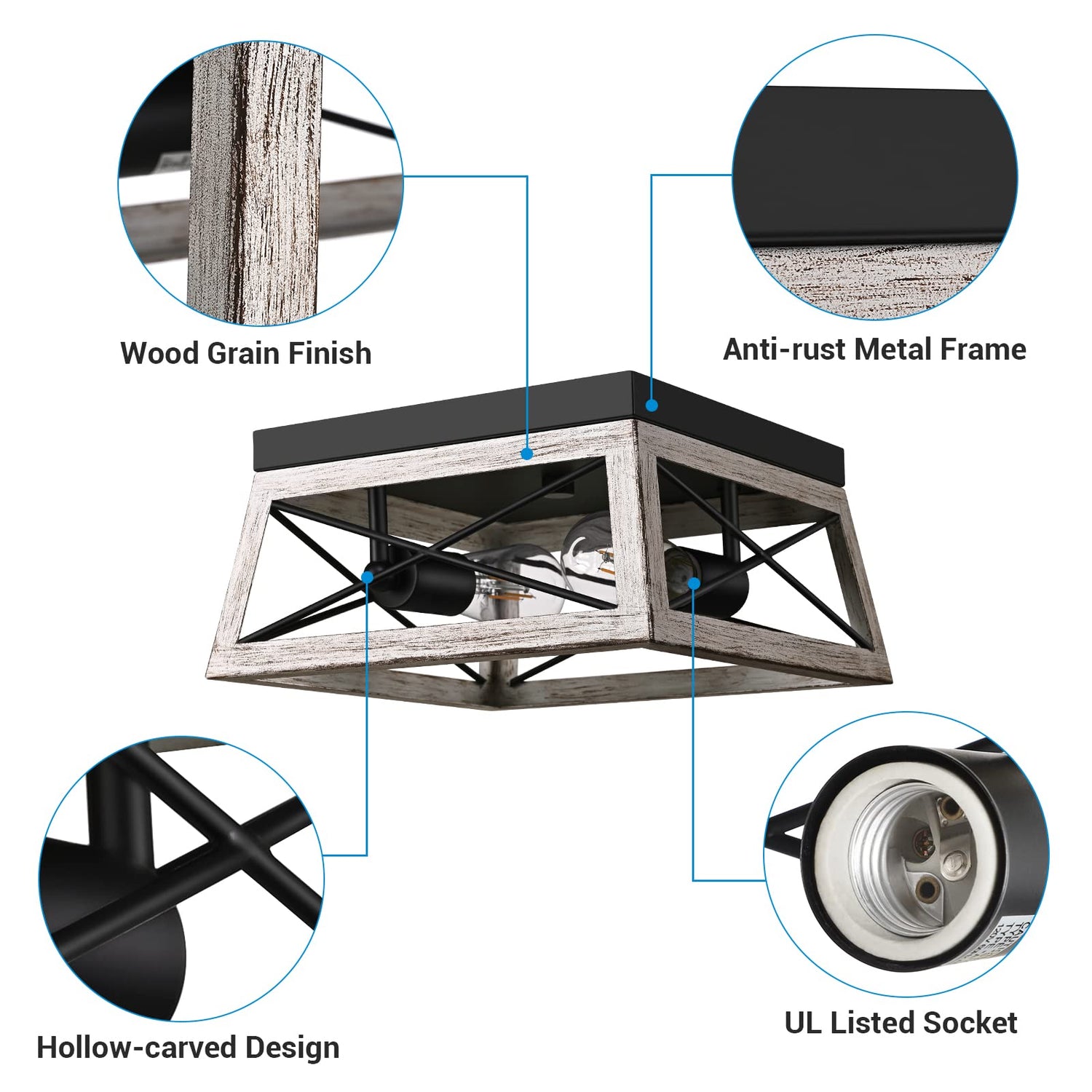 DEWENWILS Farmhouse Flush Mount Ceiling Light, Metal Ceiling Light Fixture with Wood Grain Finish, 2-Lights Hallway Light Fixture Ceiling Mount for Entryway, Foyer, Dining Room