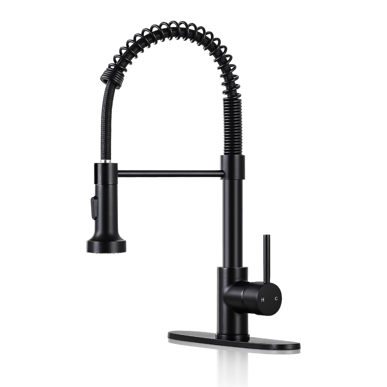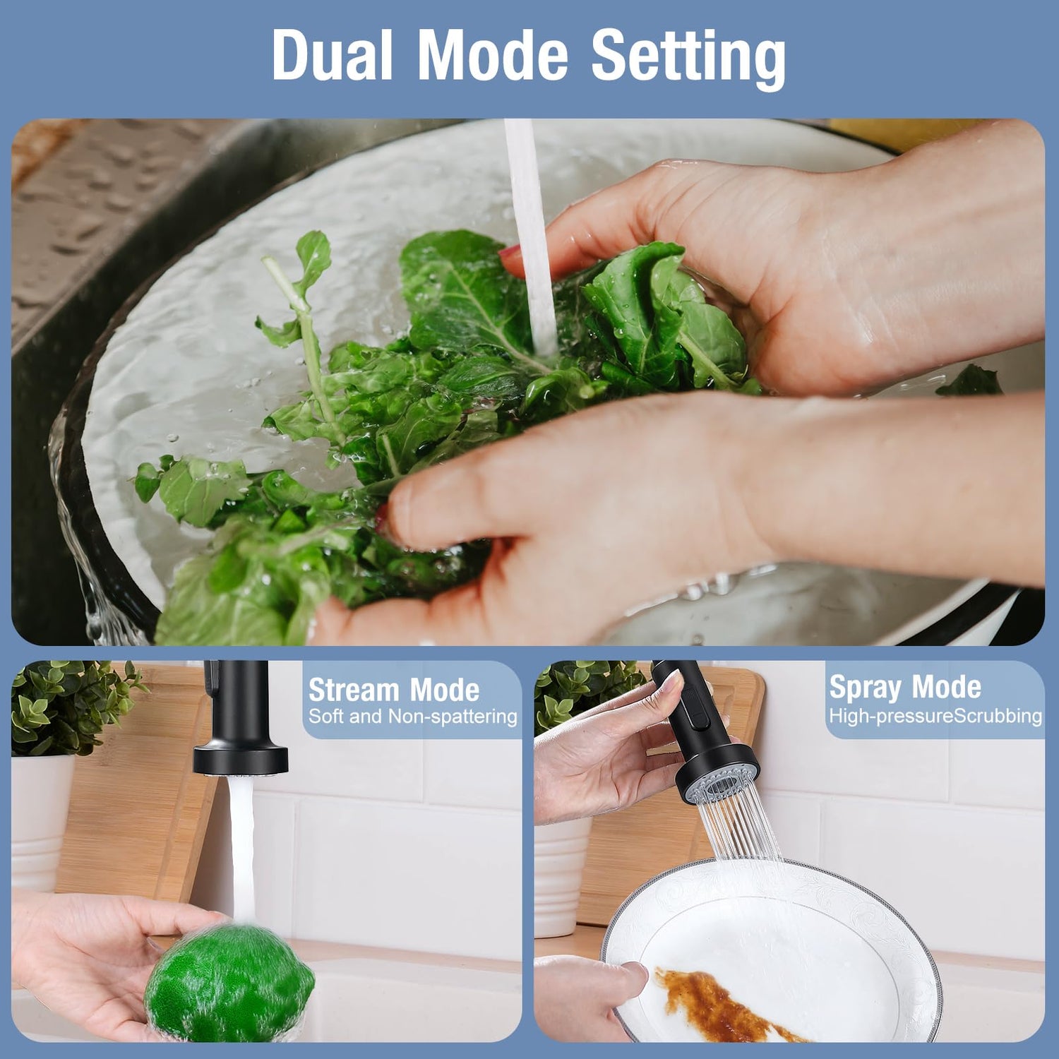 - đĄăModern Versatileă: High Arc Spring Design Kitchen Commercial Faucet, with the pull-down dual action spray head, allows for your choice of aerated flow or powerful spray for all your needs, suitable for home kitchen sink farmhouse RV vessel basin. Coming in an array of colors that match any aesthetic for home decor and using with DJS kitchen faucet.
