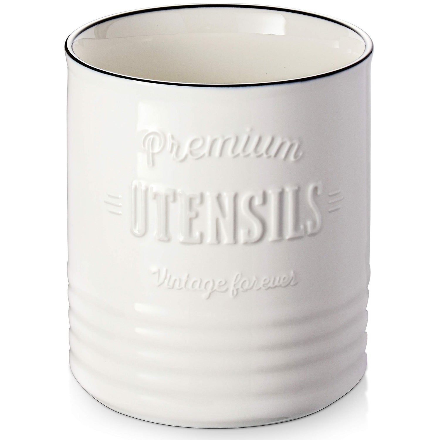 - Stable and Fall-Prevention. Unlike common metal or stainless steel utensil holders, this ceramic kitchen utensil holder is heavy and stable, avoiding utensils from falling and spilling all over the kitchen.