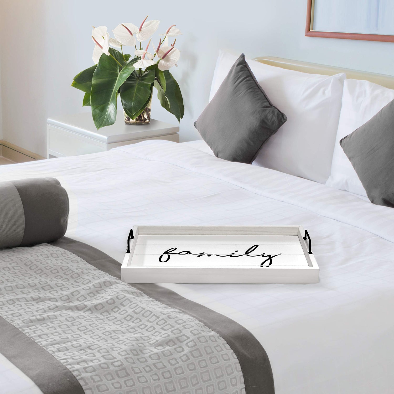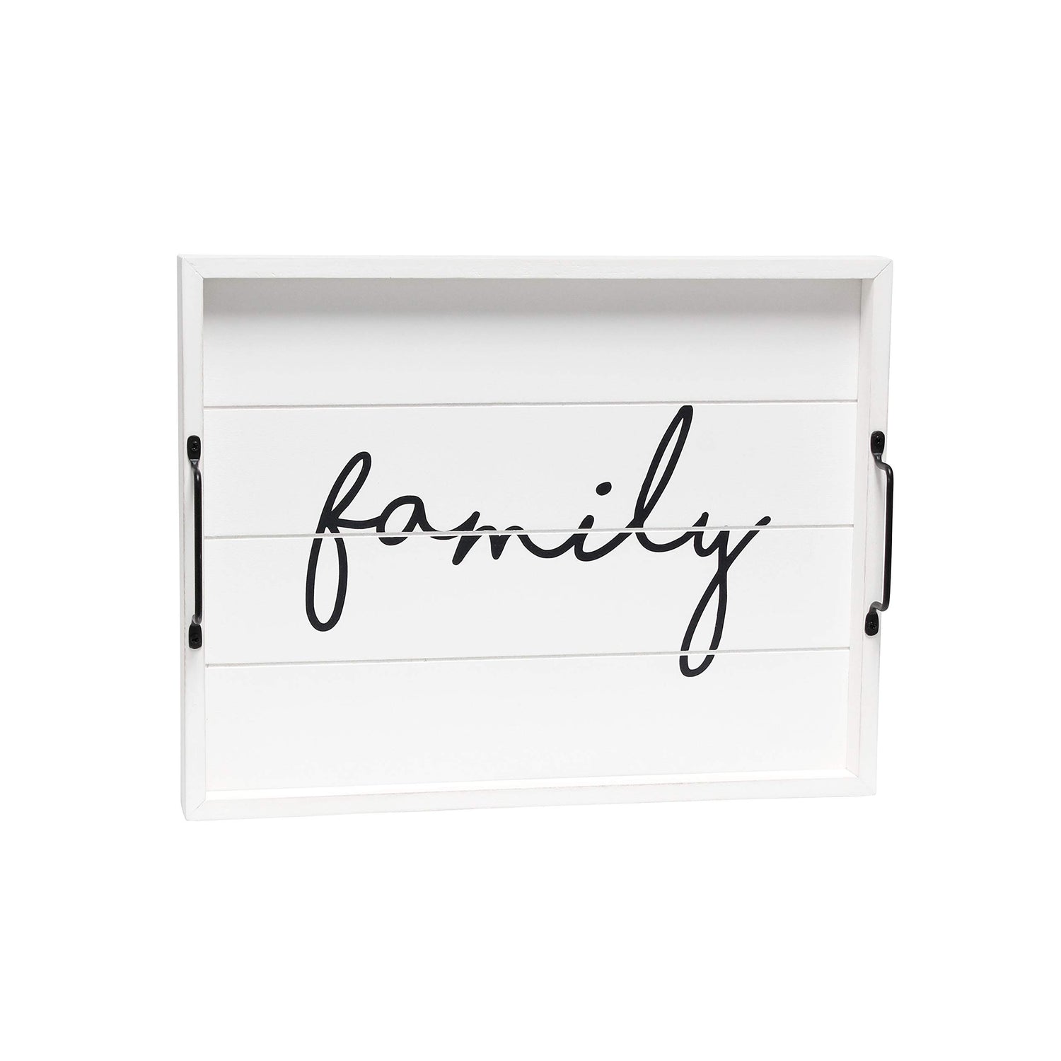 Elegant Designs HG2000-WFM Decorative Wood Serving Tray w/Handles, 15.50" x 12", Family