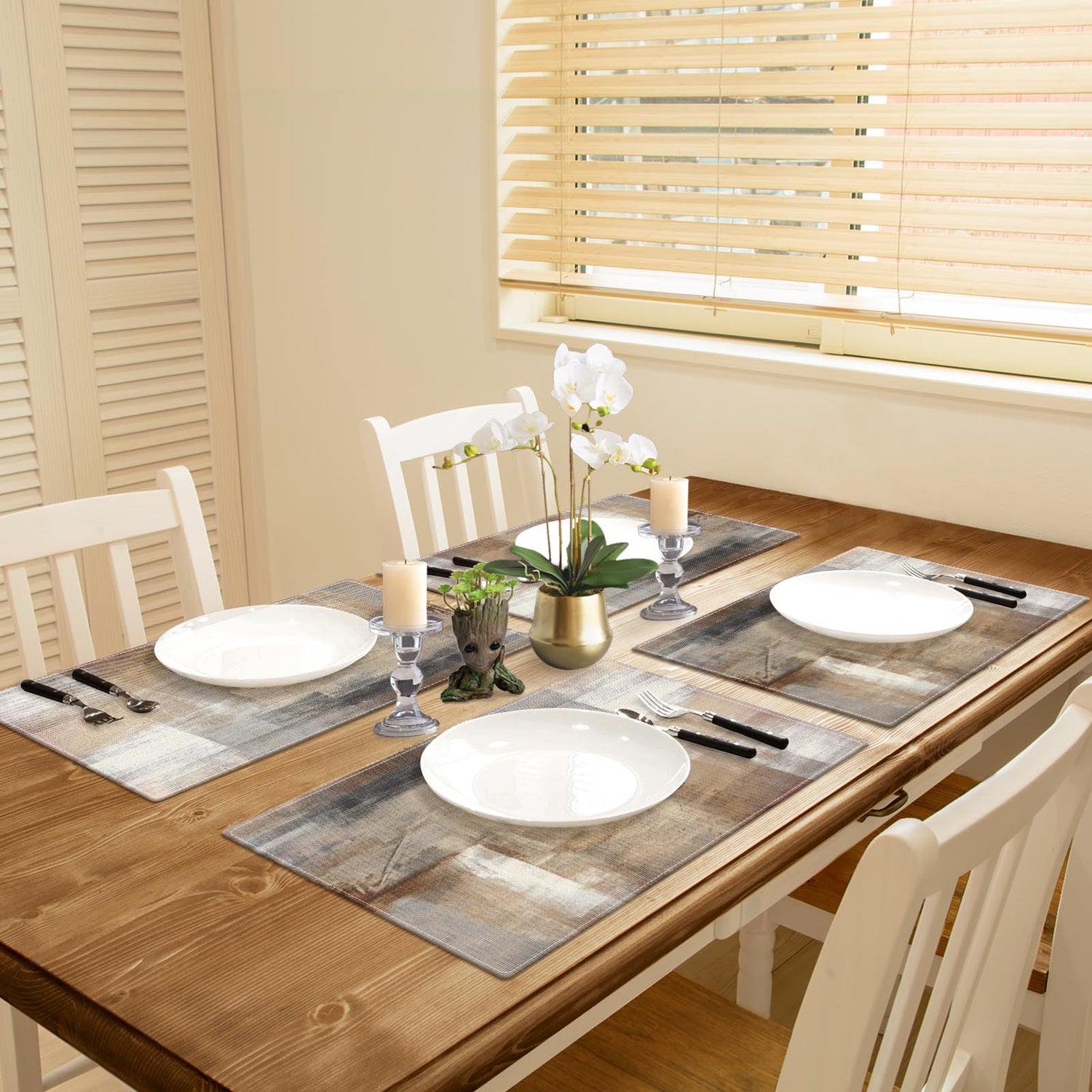 Emvency Farmhouse Placemats Set of 4, 12x18 Inch Modern Abstract White and Brown Art Painting Table Mats for Outdoor Home Party Kitchen Dining Decoration