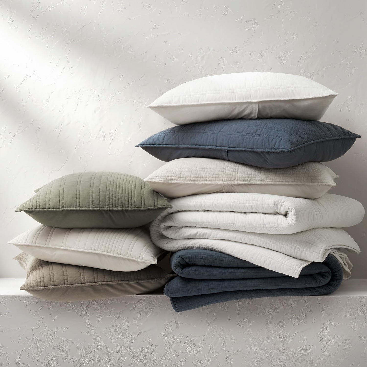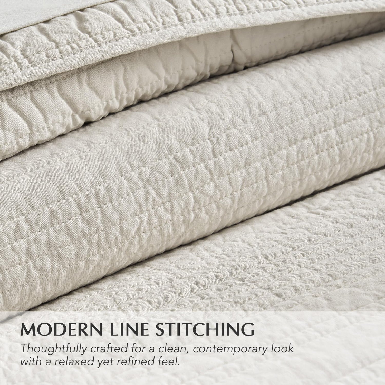 - Modern Lines Design – Bring elevated simplicity to your space with our cotton quilt, featuring refined linear stitching in artfully spaced channels. The subtle variation in line widths adds soft dimension and texture, creating a relaxed, modern aesthetic that blends casual comfort with timeless sophistication.