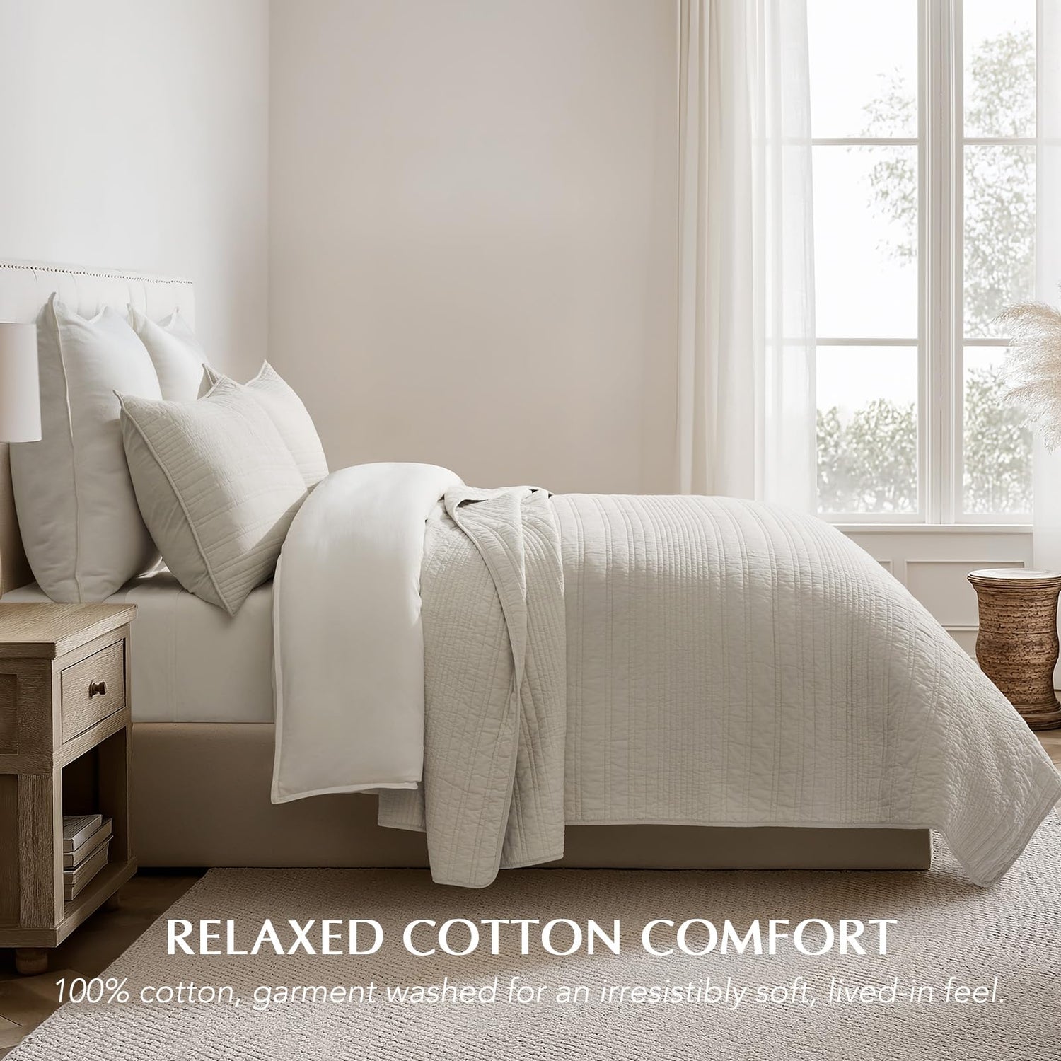 - Crafted with Care – Made from BCI cotton and Oeko-Tex Standard 100 certified for a safe, worry-free sleep. Garment-washed for an inviting feel and lasting softness. The meticulous quilting, durable stitching, and reinforced edges ensure lasting quality, making this quilt a timeless and cherished addition to your home.