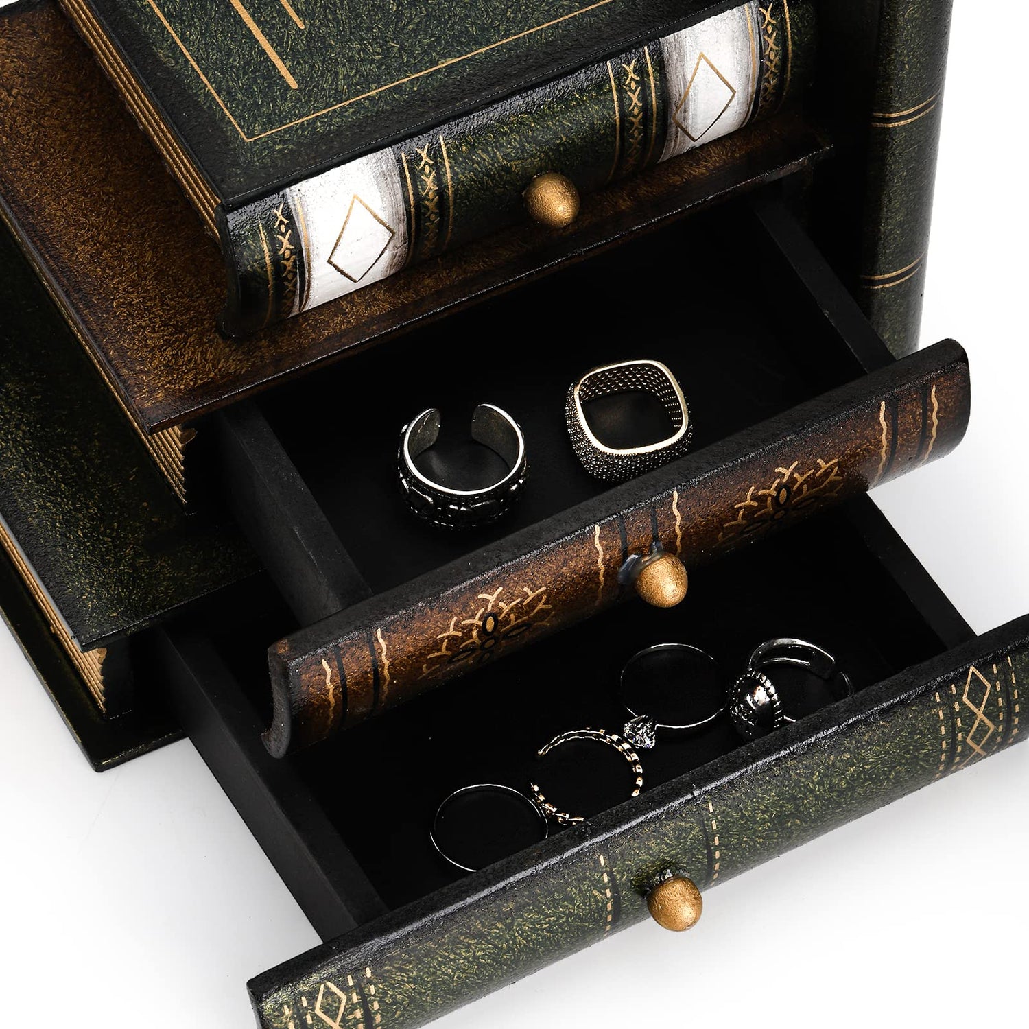 - Each bookend comes with 3 small drawers, the drawer perfect for store ear studs, earrings, bracelets and other small jewelry.